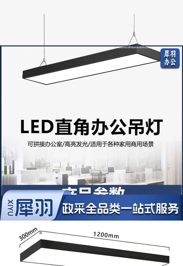 LED长条吊灯 72W 白光 可拼接直角吊灯 300*1200mm 1台