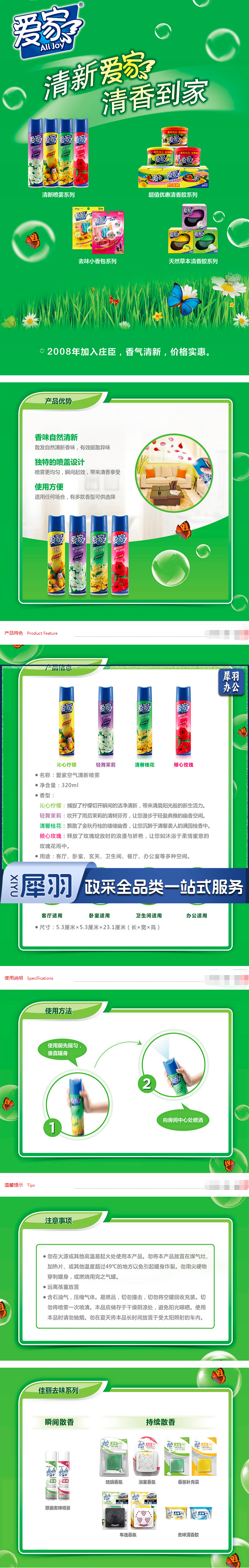 爱家(AIKa) 空气清新喷雾 320ml 柠檬香