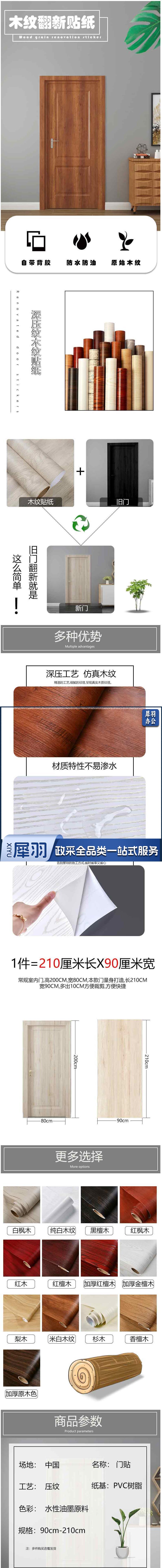 家具木门贴纸 自粘加厚房门防水包边贴纸 白木纹 90*210cm 货号:HXE