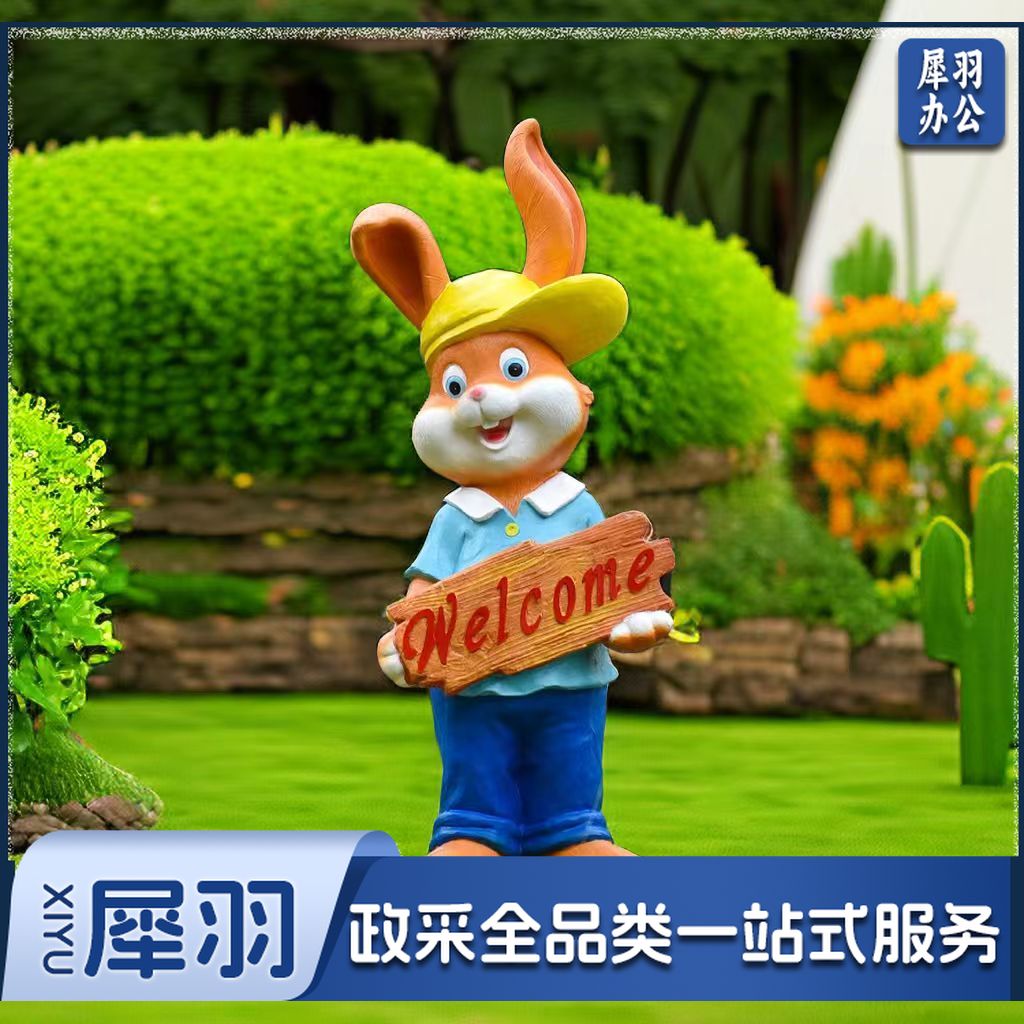 户外 卡通兔子 摆件玻璃钢树脂花园庭院动物玻璃钢雕塑幼儿园林落地摆件装饰品 迎宾男兔 47*33*118cm
