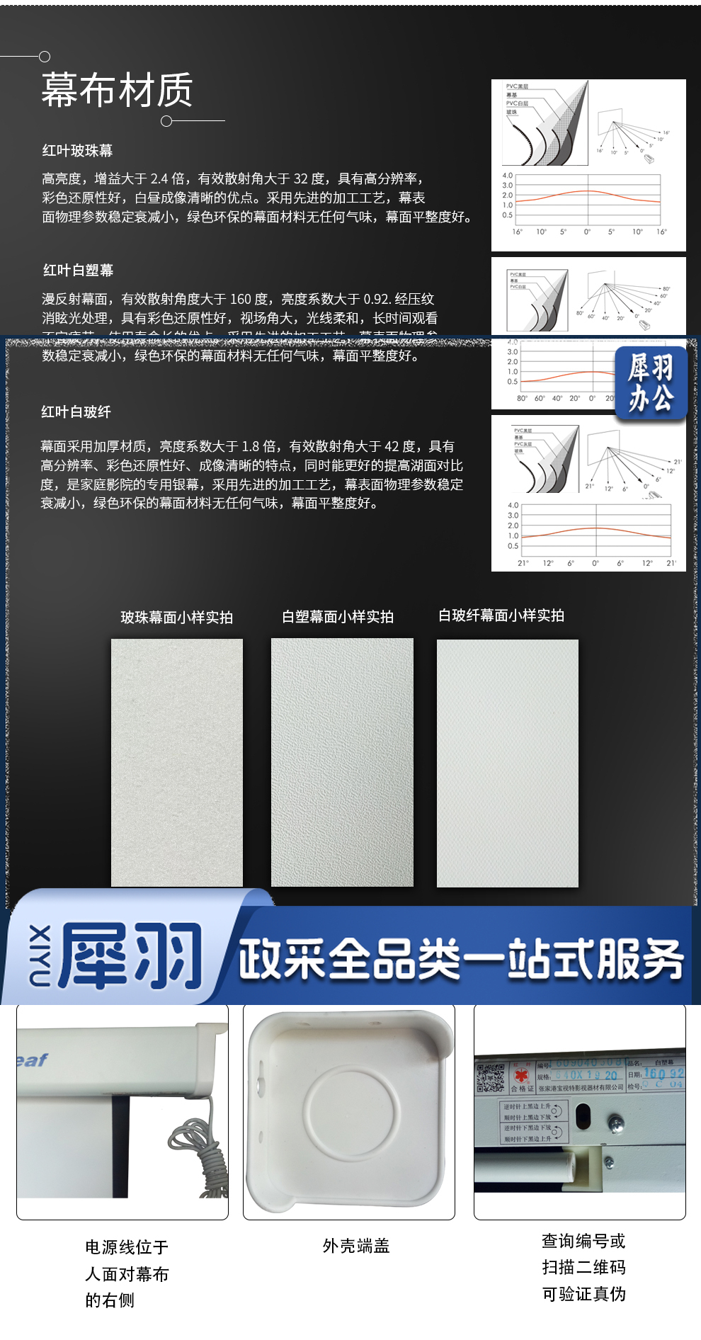 红叶电动投影幕布 300英寸16:9 玻珠幕/白塑幕定做 玻珠 6.64*3.74