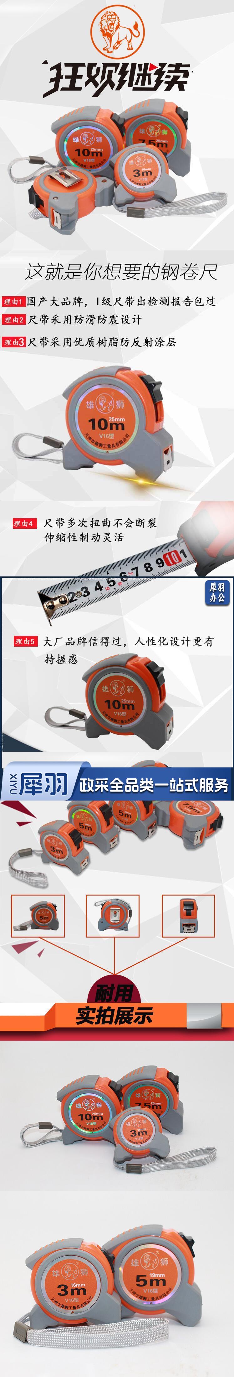 雄狮 10米盒尺(V16型)盒尺钢卷尺公制盒尺尺子