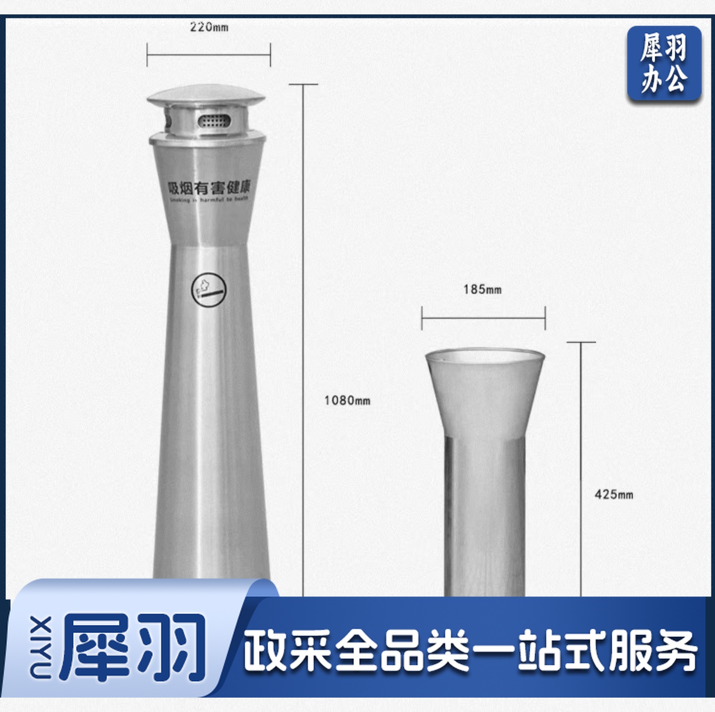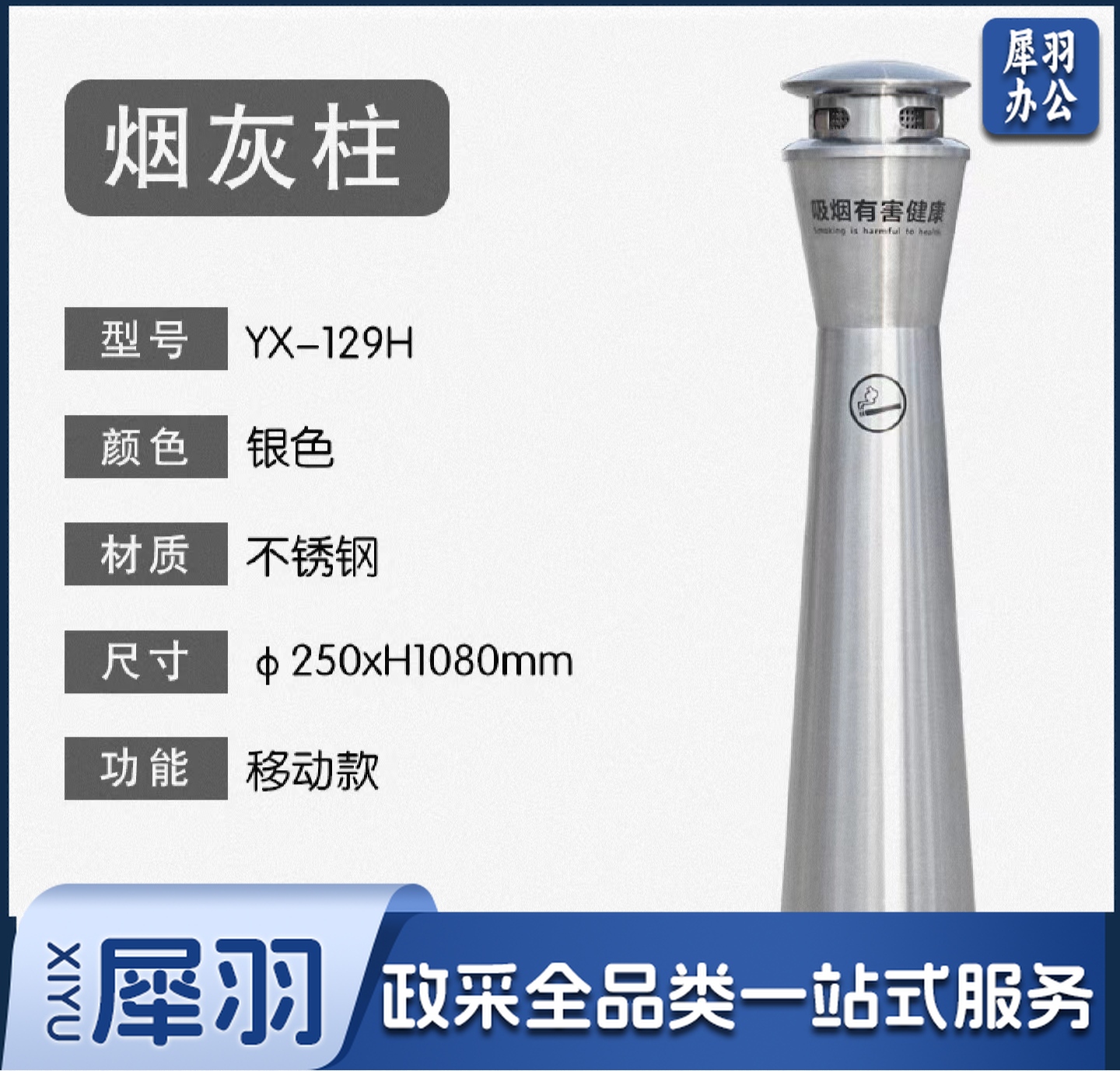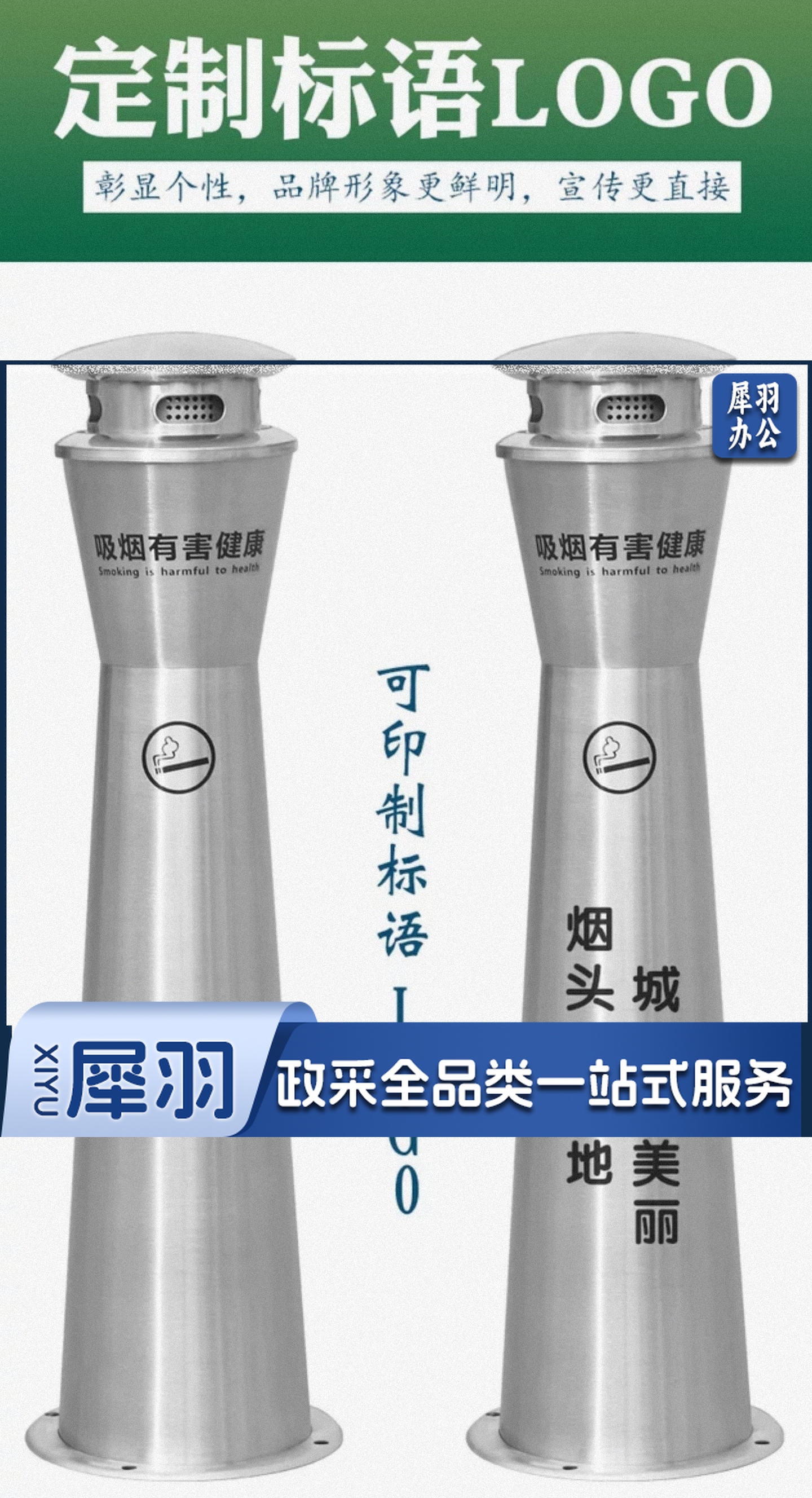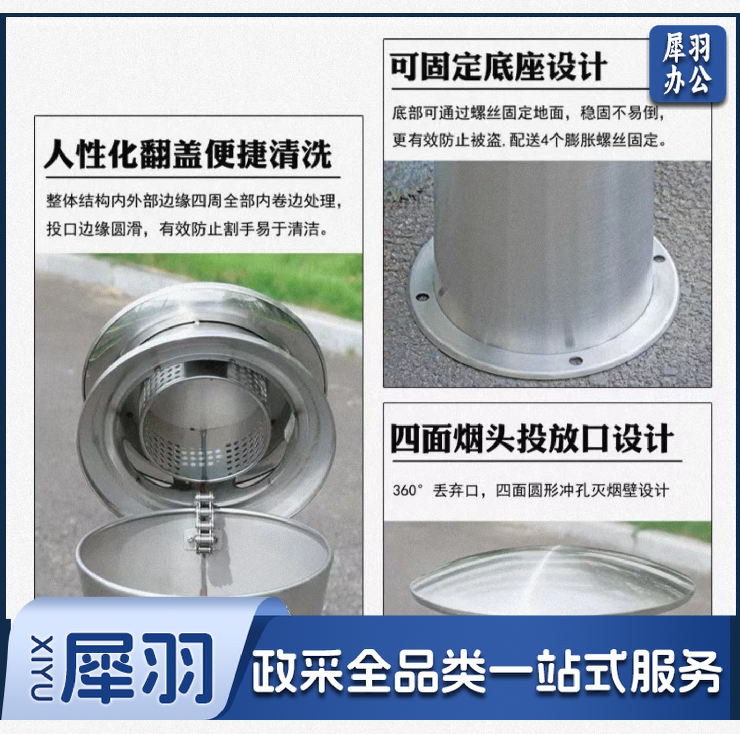 单位学校烟灰柱立式烟蒂柱立式烟灰桶烟蒂柱不锈钢户外不锈钢灭烟桶户外吸烟区烟灰缸室外落地灭烟垃圾桶 固定款/移动款可选 可定制标语LOGO