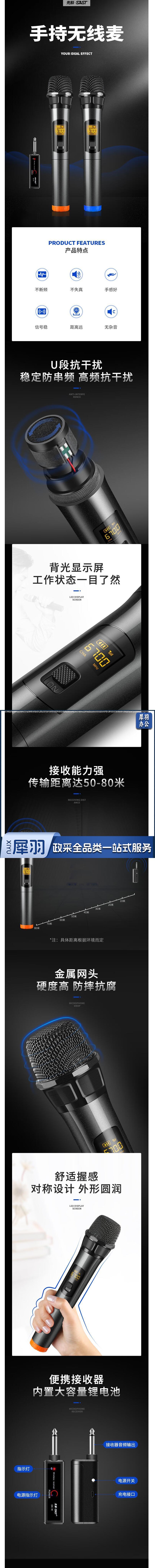 先科 无线麦克风一拖二通用万能话筒 万能麦标准款1拖2 货号:YC