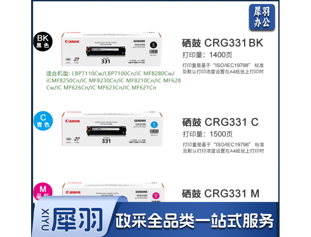 佳能 Canon CRG-331硒鼓(单支装)红 黄 蓝 黑 下单备注颜色适用于LBP7110Cw/LBP7100Cn/iC MF8280Cw/iC MF8250Cn MF628CW MF621CN) ydfg-230927143205