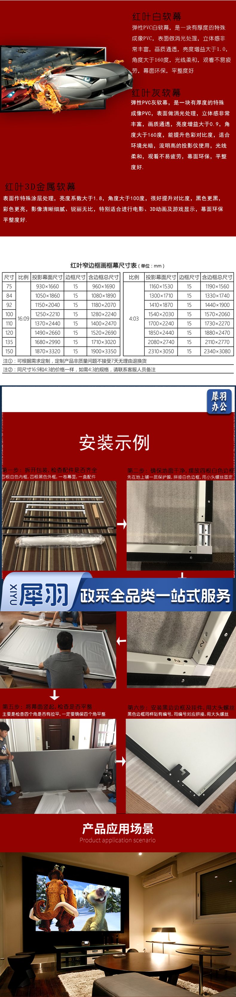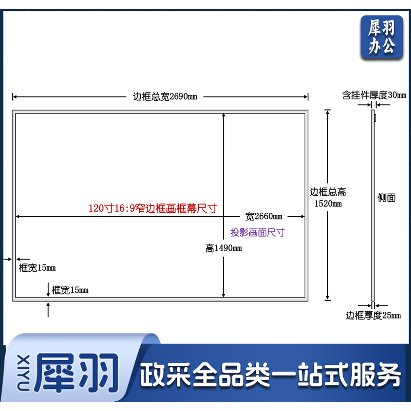 窄边框120寸16:9纳米高清4K&3D白软幕灰幕金属幕影院画框幕 2.66*1.49