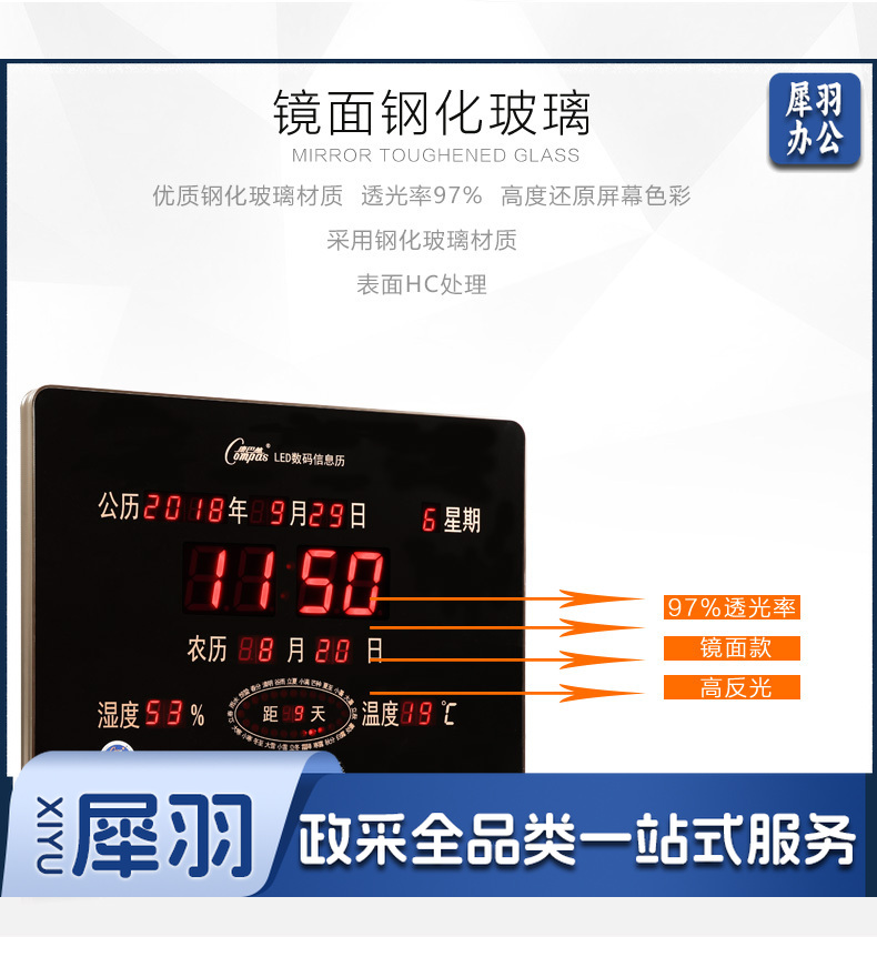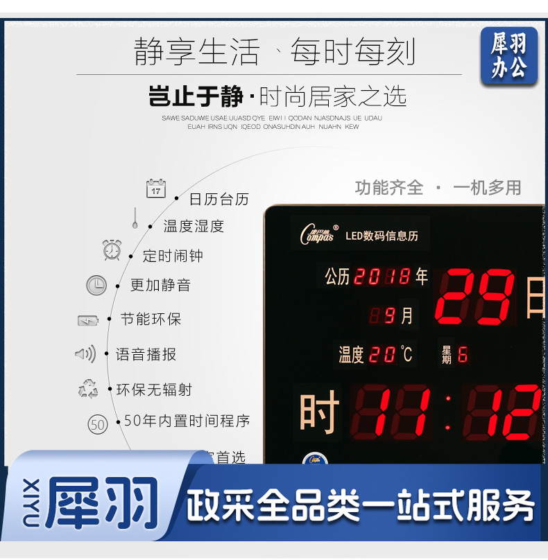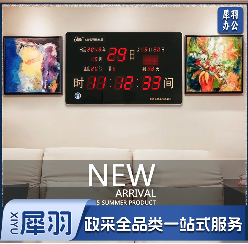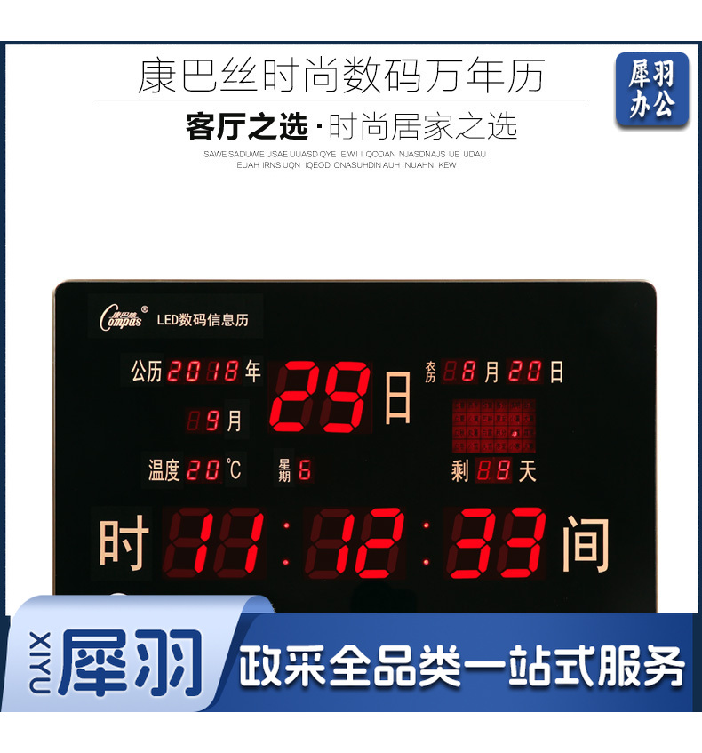 康巴丝 万年历电子挂钟 夜光超薄钟表 95*55温湿度数码 20英寸
