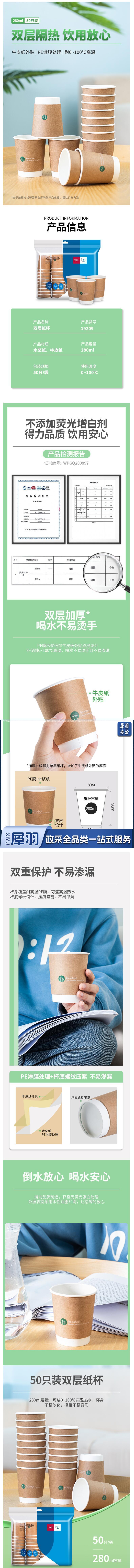得力(deli)280ml一次性杯子 纸杯/水杯 牛皮纸外层 双层加厚 50个装 19209(每箱16包)