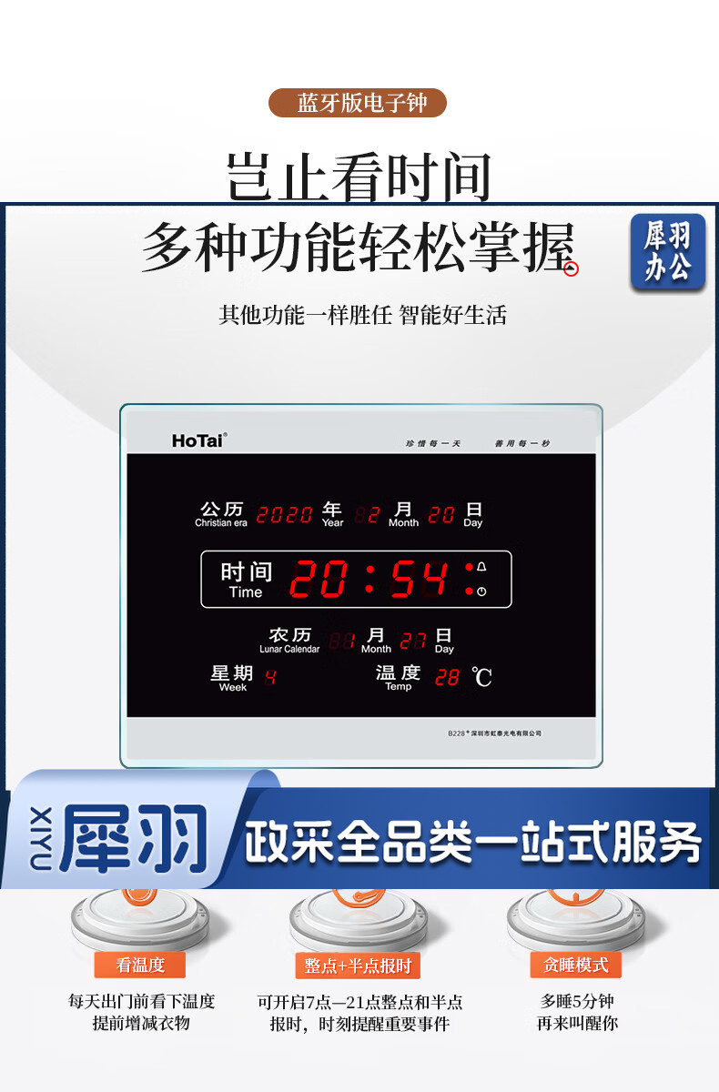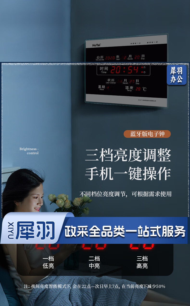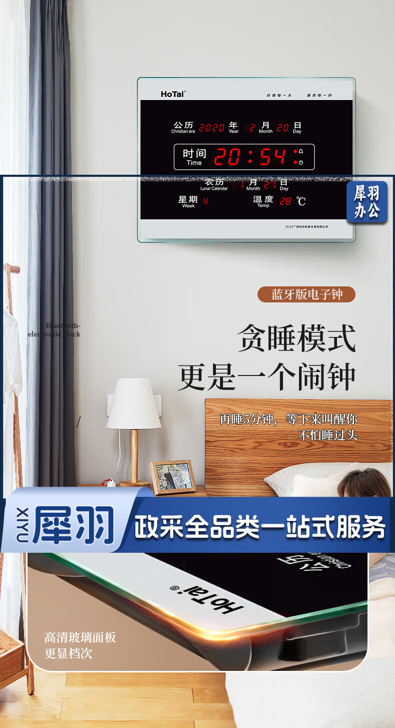 虹光 万年历电子挂钟 B228-09时尚黑蓝牙