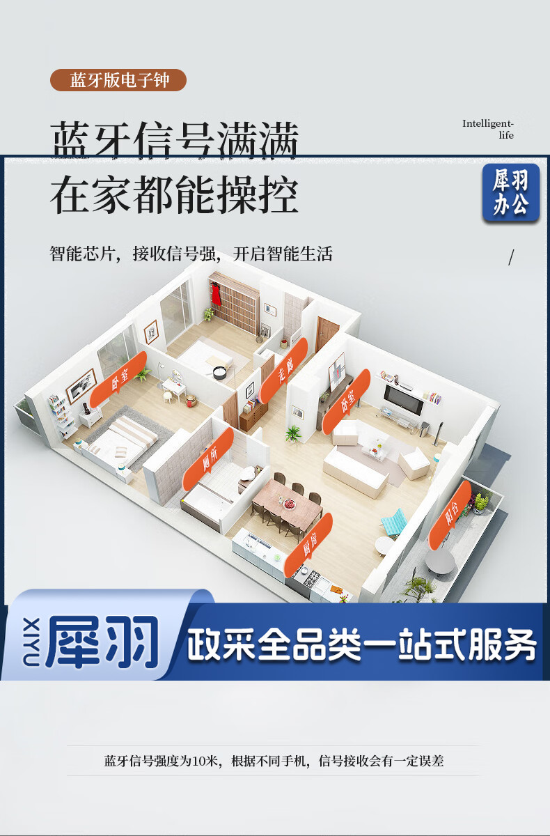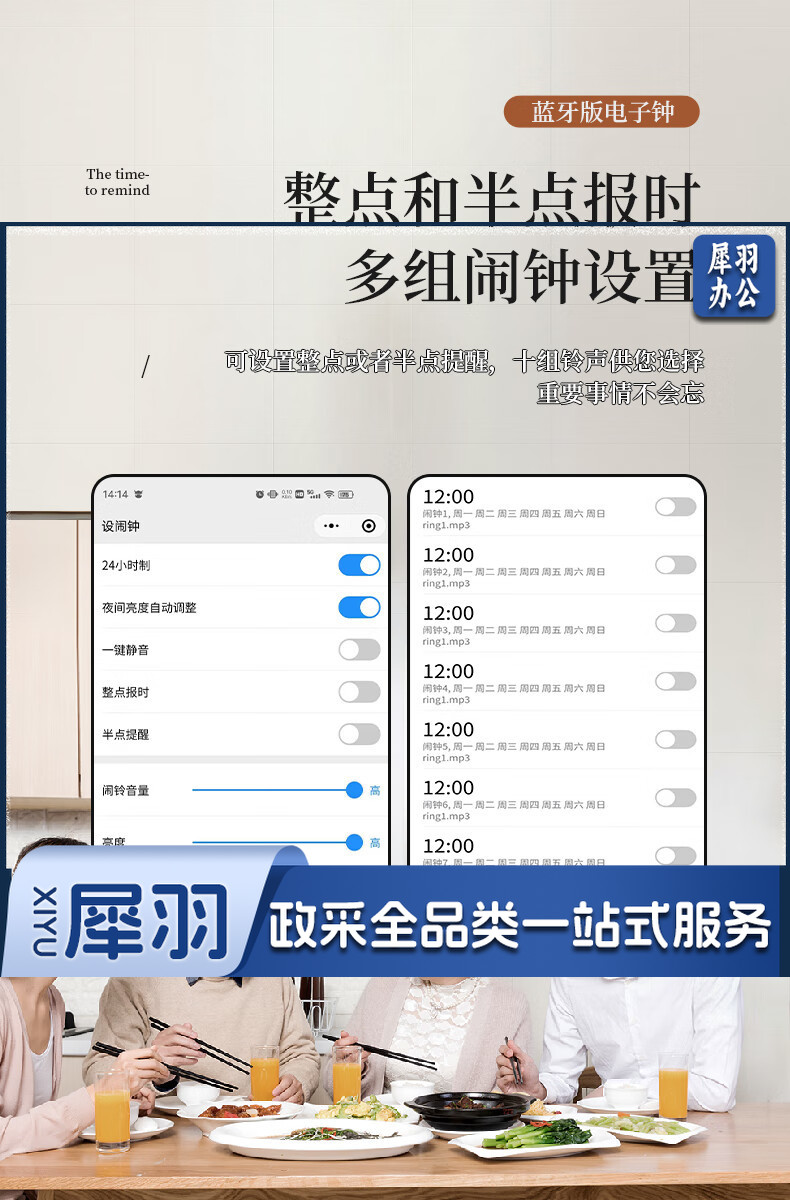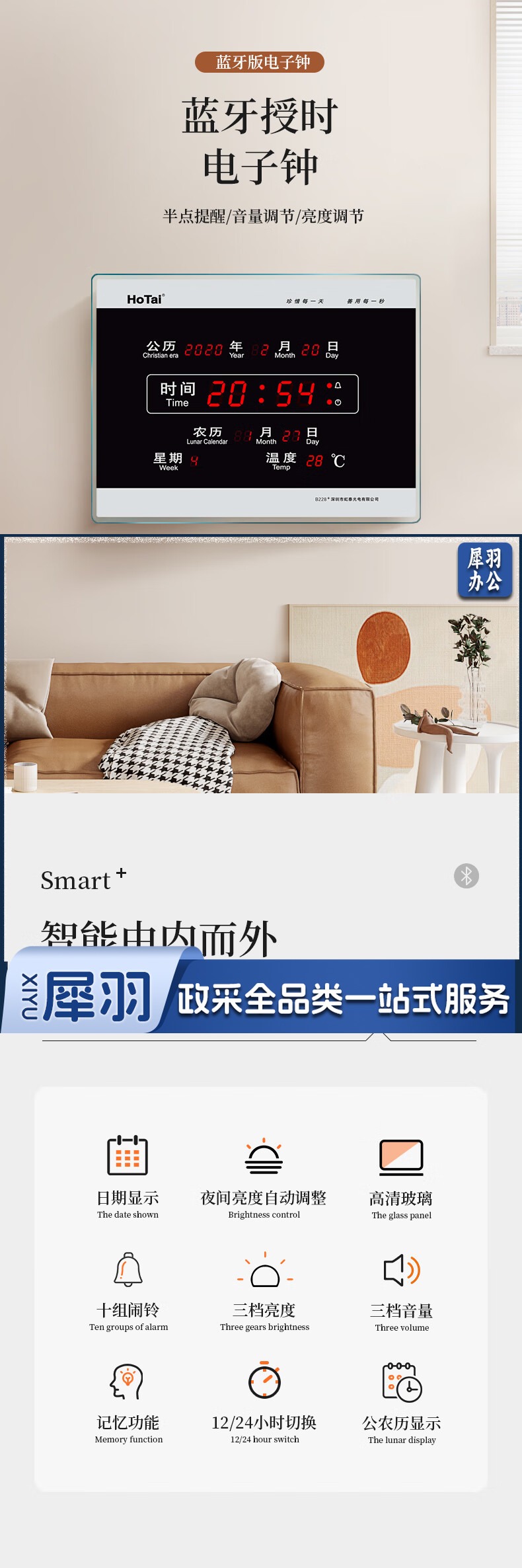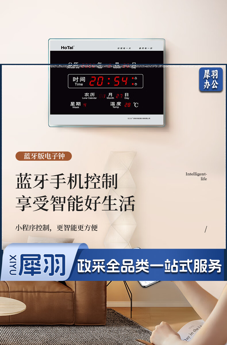 虹光 万年历电子挂钟 B228-09时尚黑蓝牙