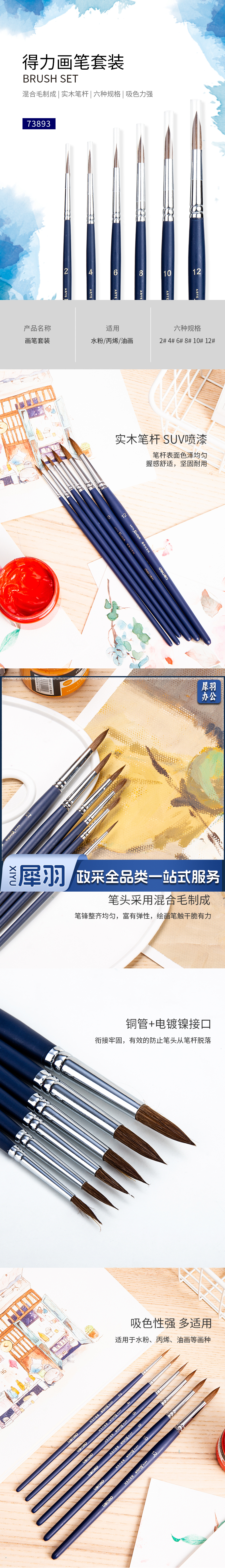 得力73893圆头混合毛画笔6支套装蓝色6支/袋(单位:袋)
