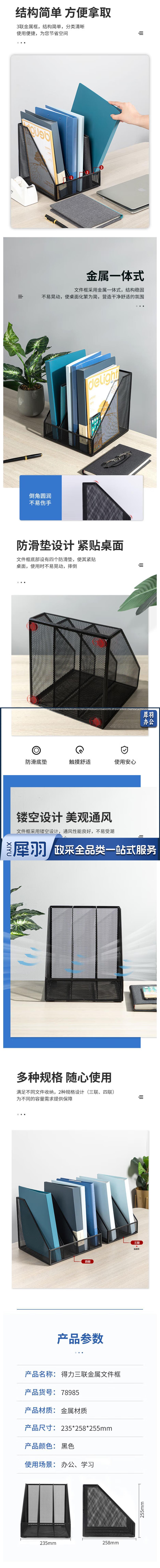 得力 三联金属文件框 网状镂空文件架/文件栏 黑色78985