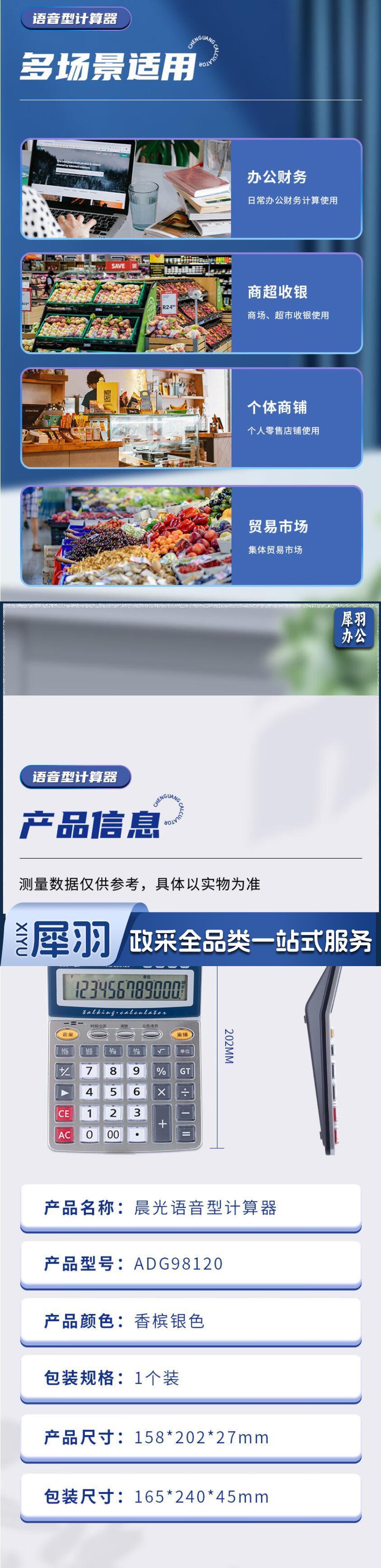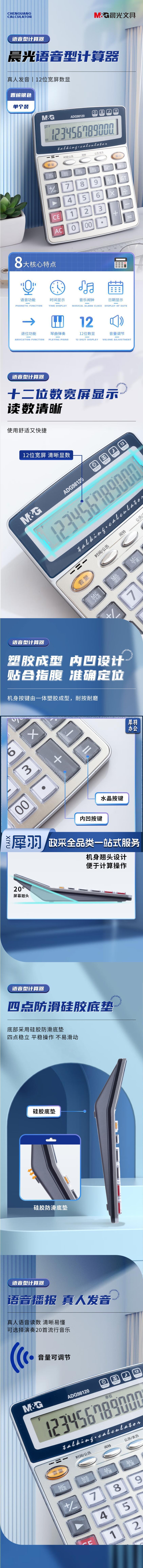 晨光(M&G)金属面板计算器 语音型桌面计算机12位大屏幕计算器 银色ADG98120