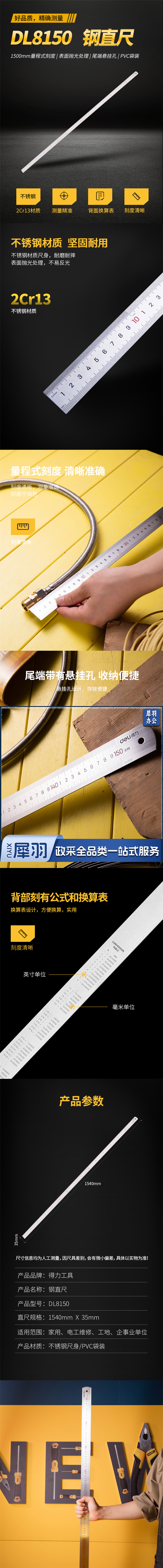 得力工具 DL8150 钢直尺1500mm (单位:把)