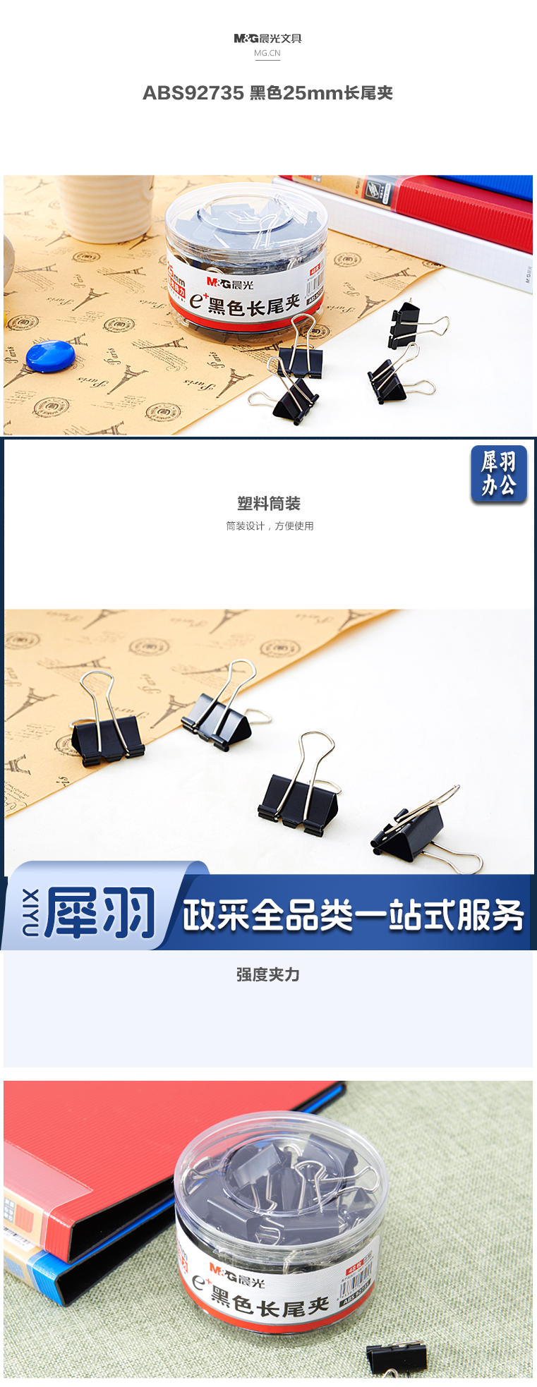 晨光 4号长尾夹 燕尾夹 25mm 48个/筒 ABS92735 黑色