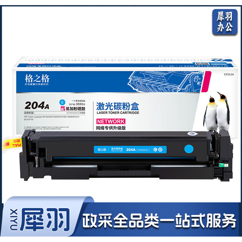 格之格 204a青色硒鼓适用惠普m180n硒鼓hp Color LaserJet Pro m181fw M154NW m154a cf510a超大容量青色带芯片