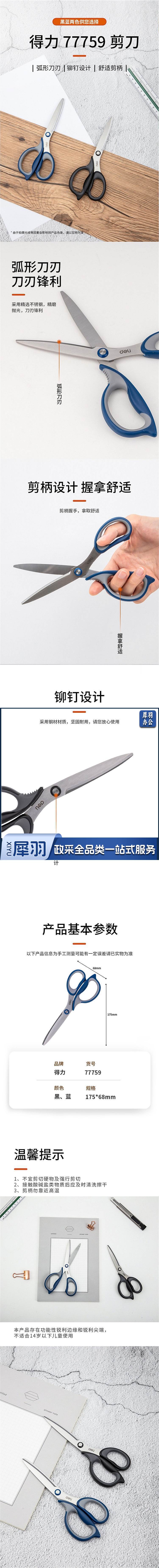 得力(deli)170mm不锈钢剪刀手工剪刀多功能剪刀弧形刀刃 77759