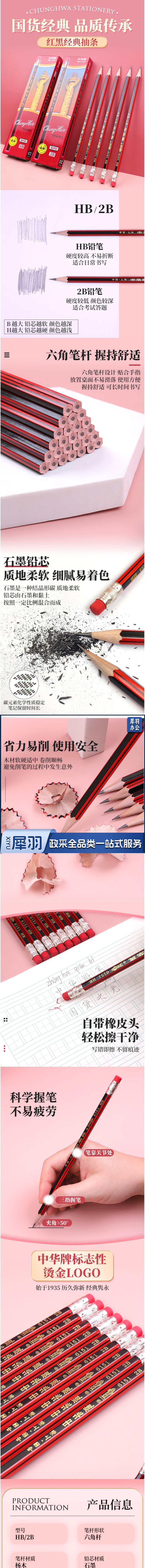 中华 HB 红黑抽条铅笔6151六角铅笔12支装