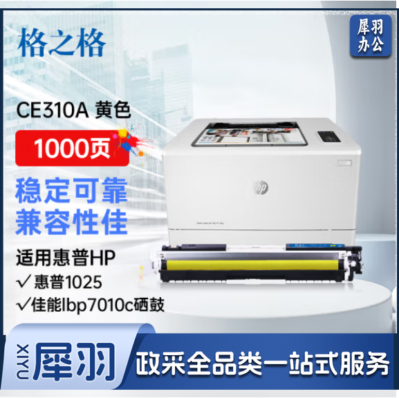 格之格 cp1025墨粉盒CE312A黄色适用惠普126a M175NW M275佳能7010c打印机粉盒 cp1025 CRG-329硒鼓