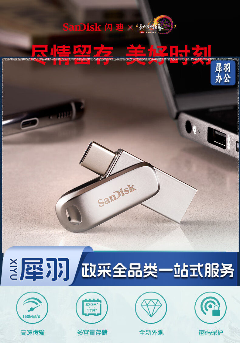 闪迪(SanDisk) 256GB Type-c 手机U盘 DDC4 安全加密 usb双接口优盘 手机平板笔记本电脑通用
