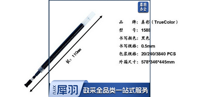 真彩 1588 按动中性笔专用替芯 0.5MM 黑色 单位:支
