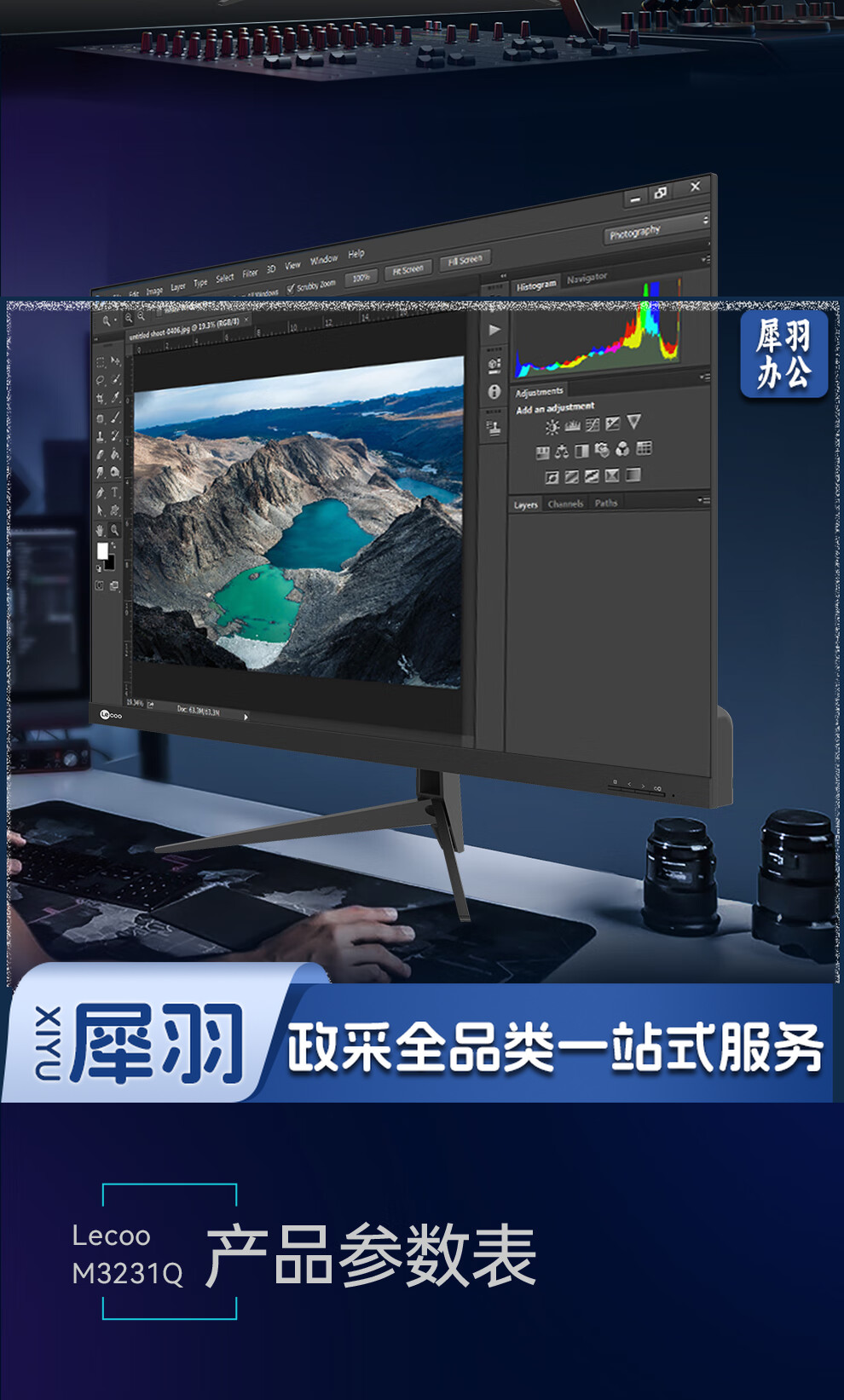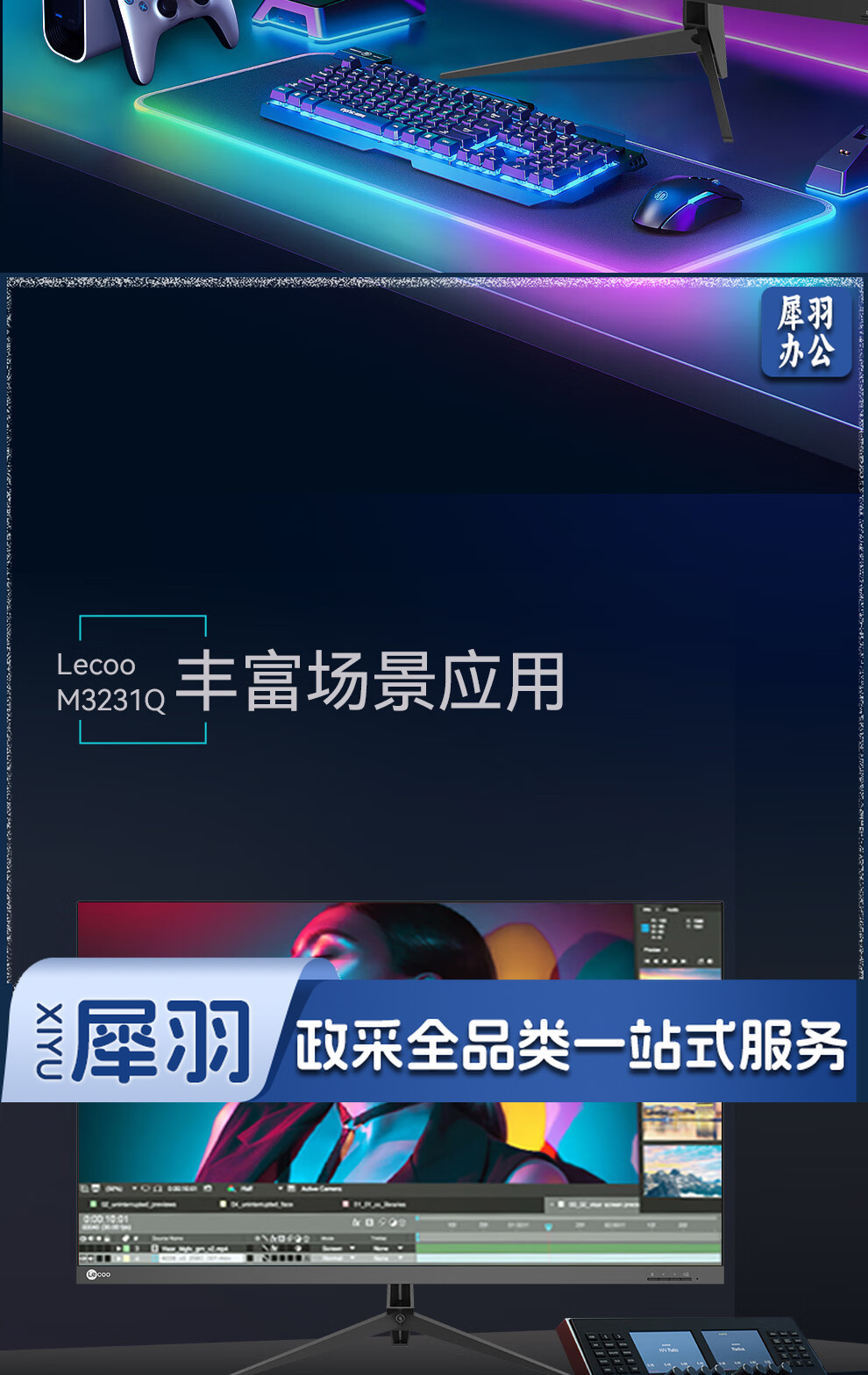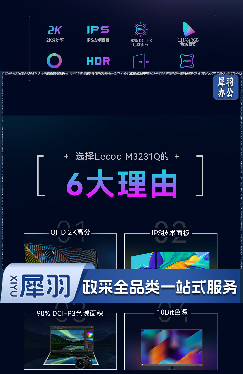 Lecoo联想来酷31.5英寸2KIPS技术面板HDR10Bit三面微边低蓝光不闪屏设计办公显示器M3231Q