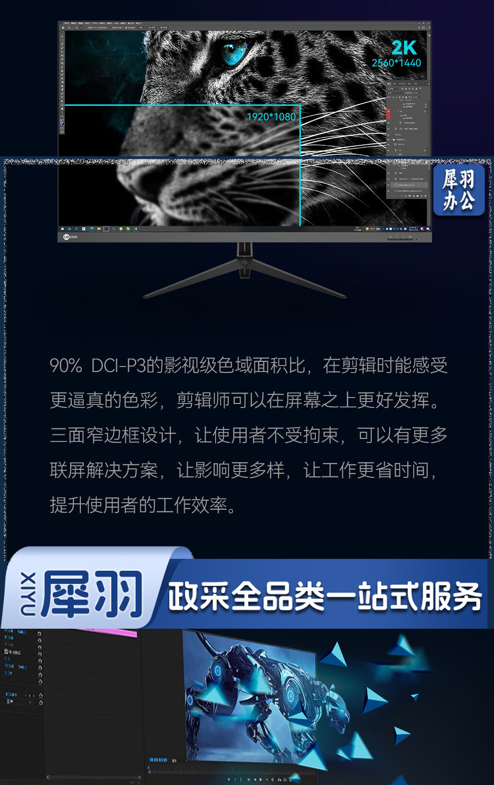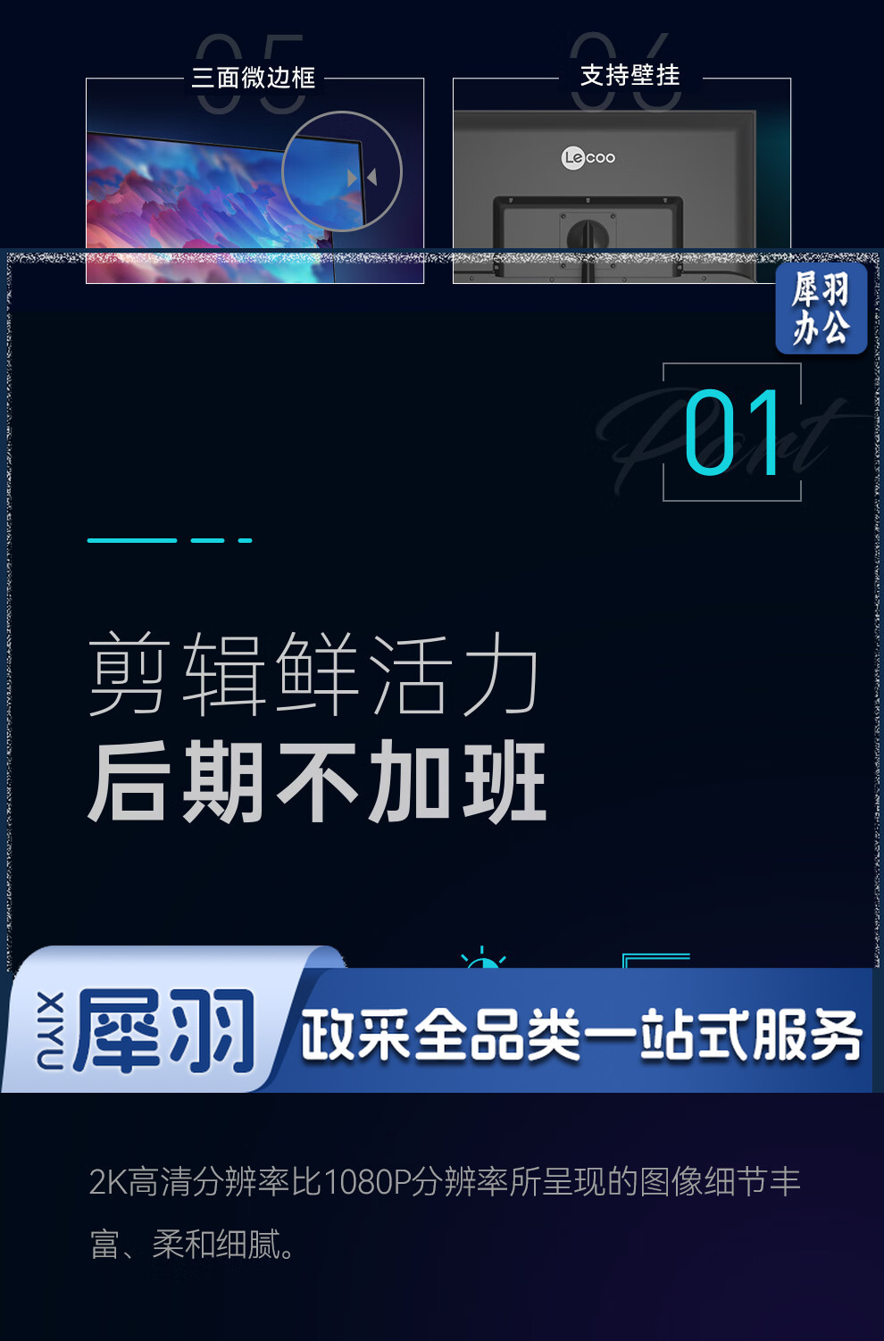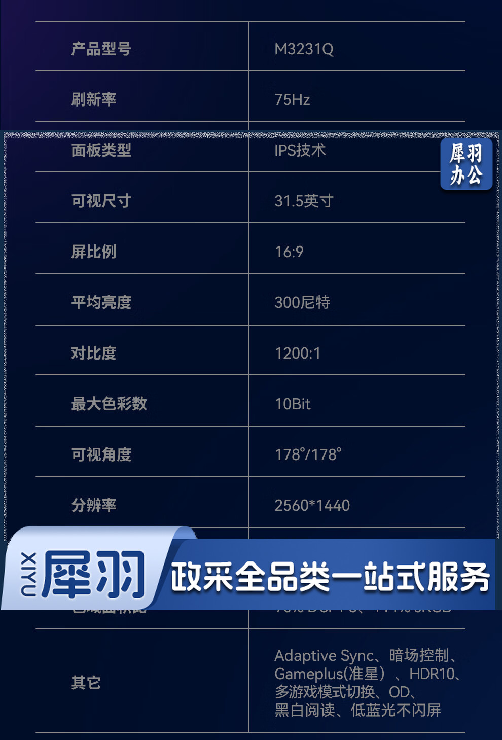 Lecoo联想来酷31.5英寸2KIPS技术面板HDR10Bit三面微边低蓝光不闪屏设计办公显示器M3231Q