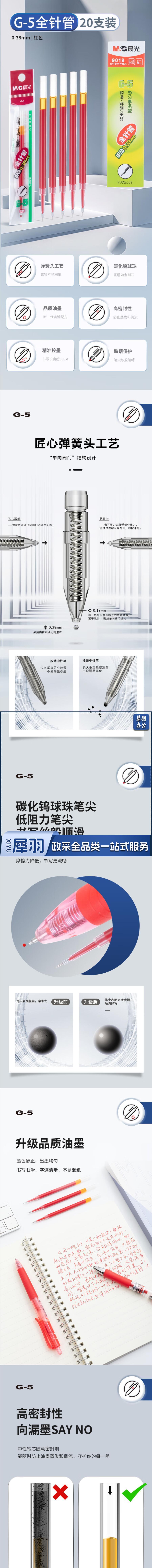 晨光0.38mm红色中性笔替芯 经典按动款签字笔替芯 G-5全针管系列水笔芯 20支/盒9019C