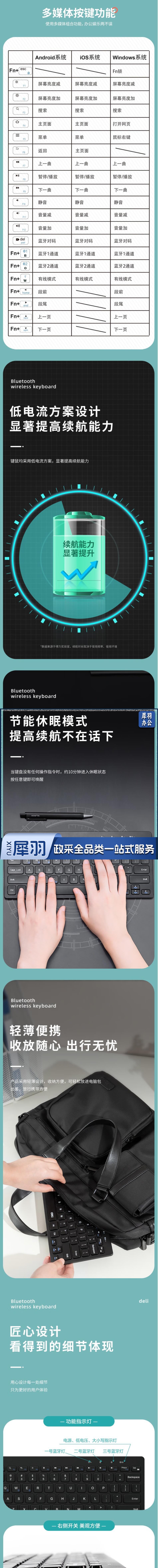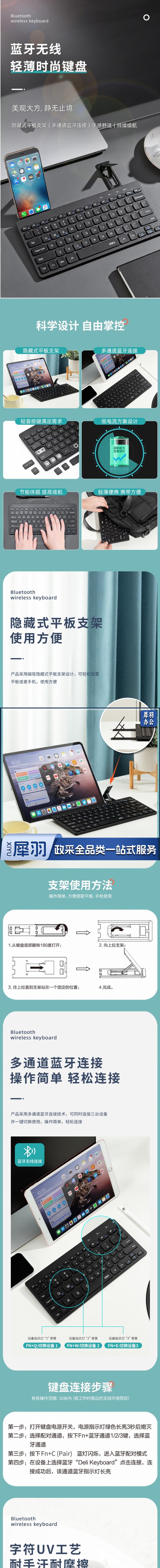 得力 蓝牙键盘 带磁吸支架平板键盘 多通道蓝牙无线键盘LN300-B