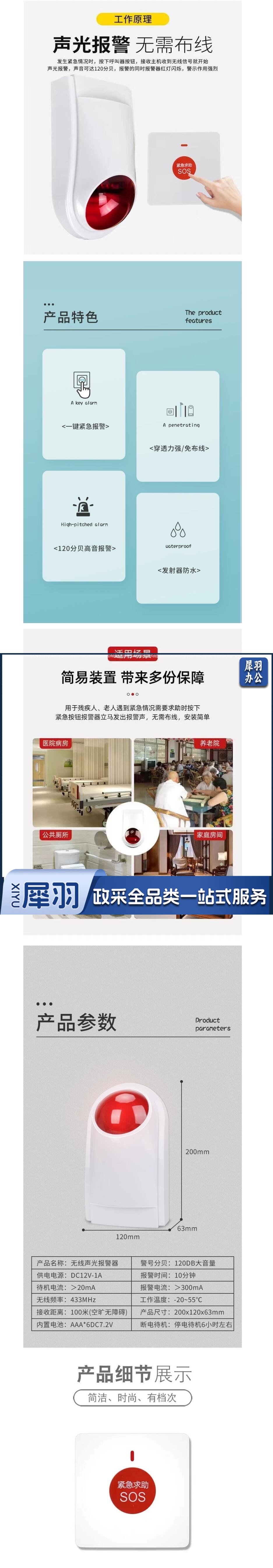 历高 残卫报警器 无线声光报警厕所无障碍紧急求助一键呼叫 5按钮+1报警器 货号:JC