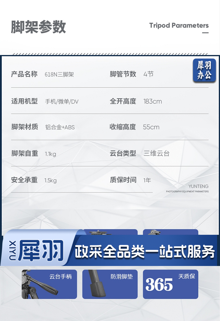 云腾/YUNTENG VCT-618N 拍照直播稳定便携手机三脚架1.8米高 黑色 (单位:个)
