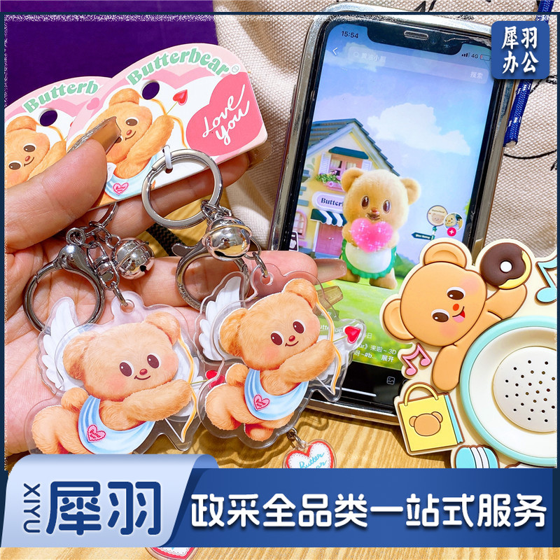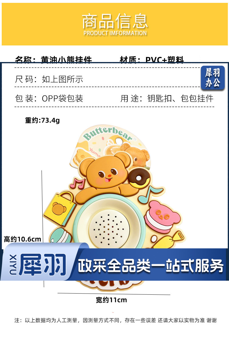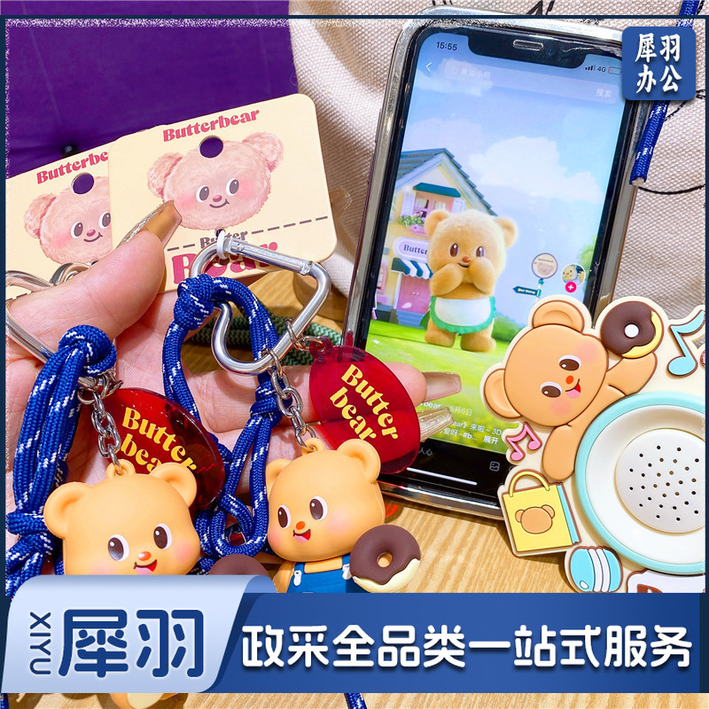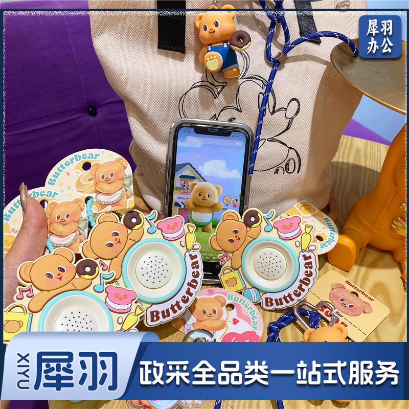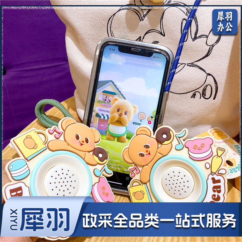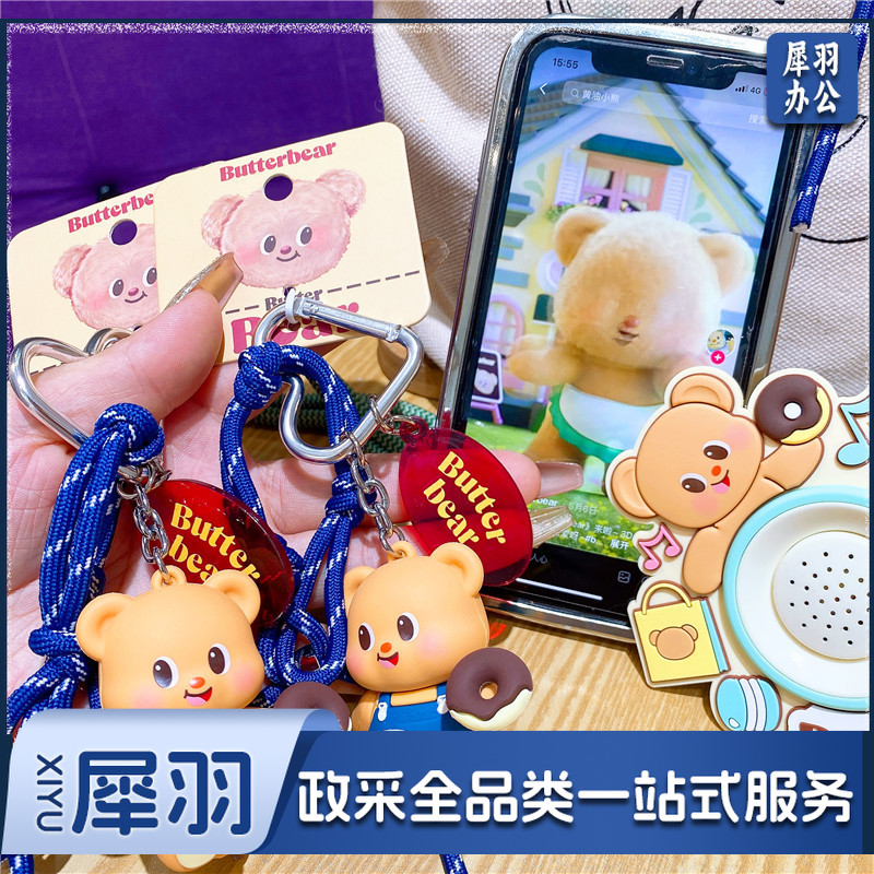 新款正版泰国黄油小熊趣味录音喇叭钥匙扣音乐挂件背包挂饰