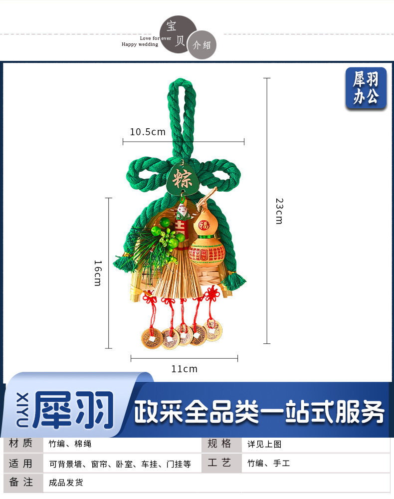 端午节艾草入户大门把手扫帚挂件装饰万字结葫芦香包香囊车载挂饰