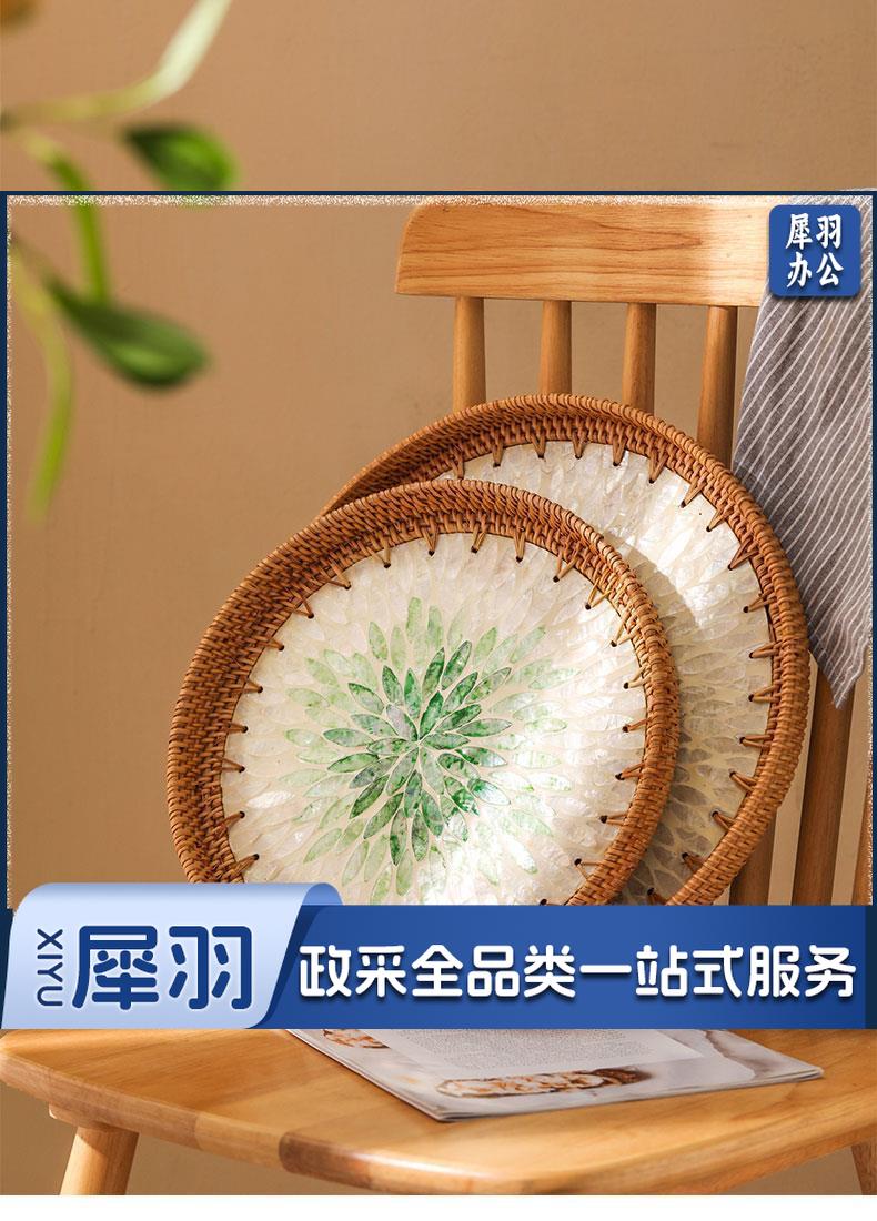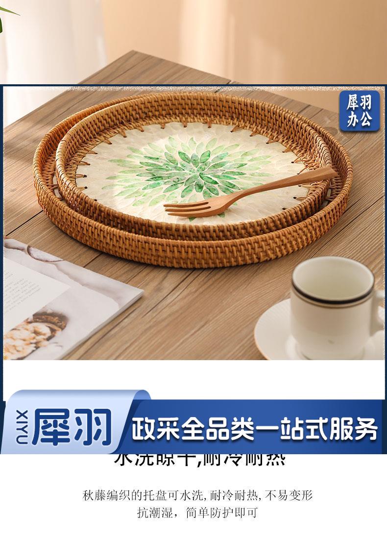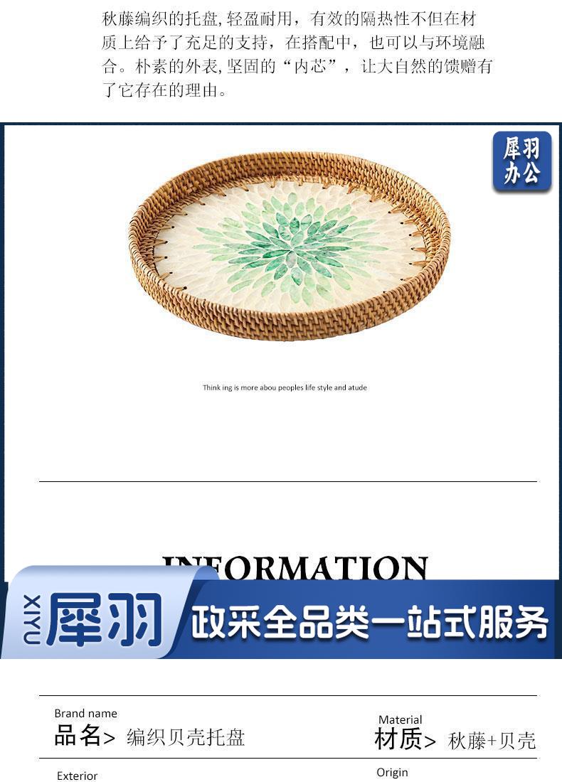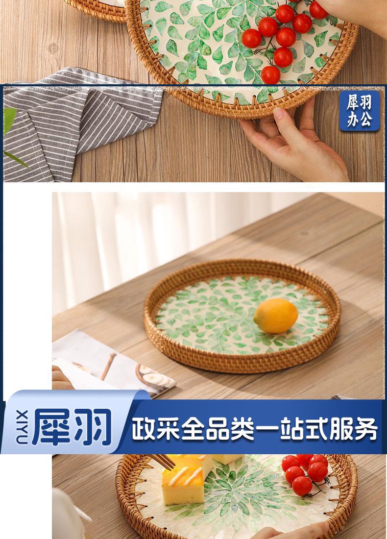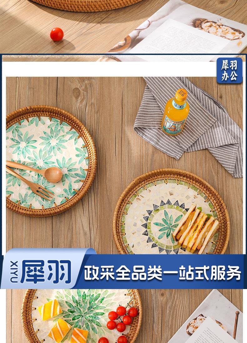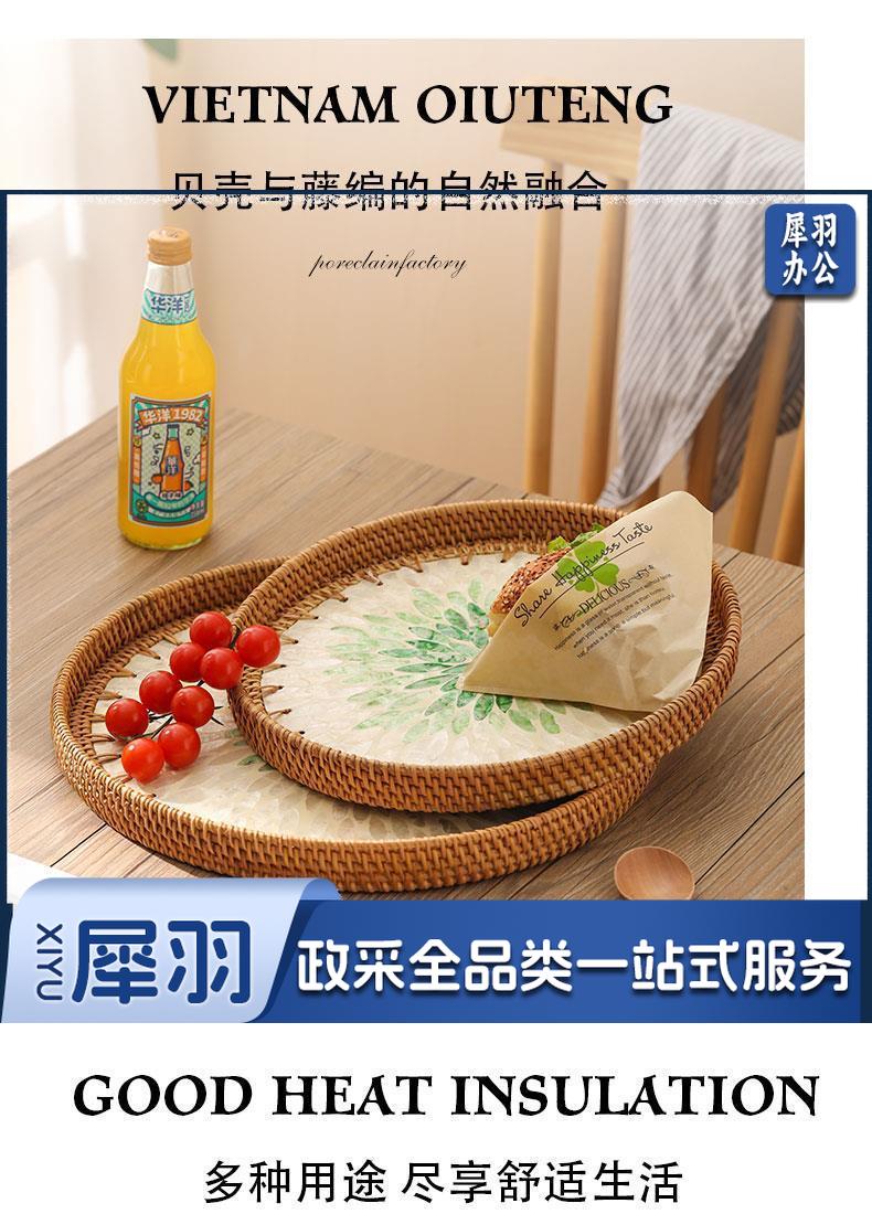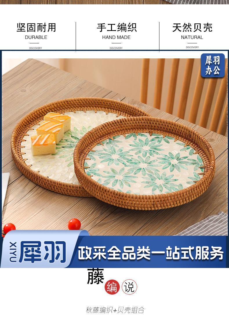 手工藤编彩贝壳托盘果盘家用创意客厅茶几收纳框水果盘面包点心盘