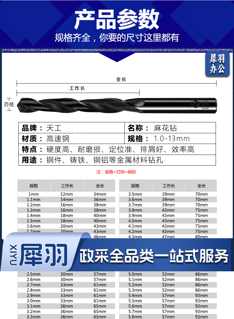 天工(TG)4.2mm 直钻/直柄麻花钻头/手电钻钻头
