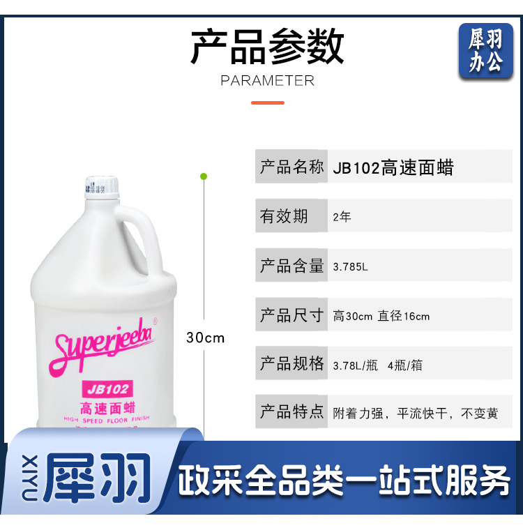白云清洁(baiyun cleaning)JB102高速面蜡地板蜡大理石瓷砖抛光蜡打蜡水 3.78L*4瓶