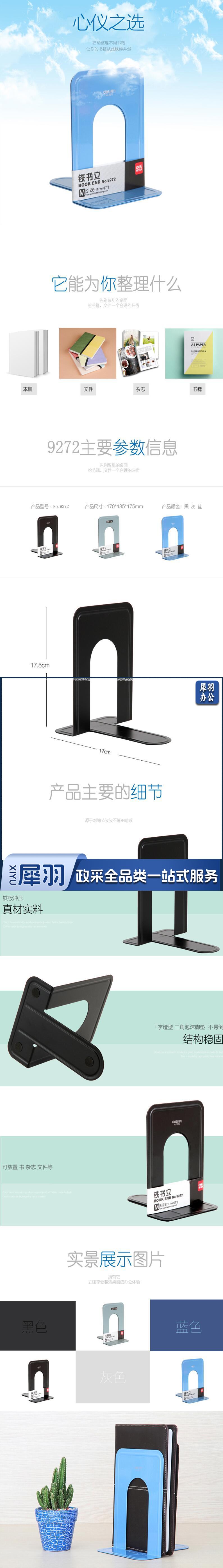 得力9272金属铁书立架 书籍挡靠夹2片/付175mm中号蓝色