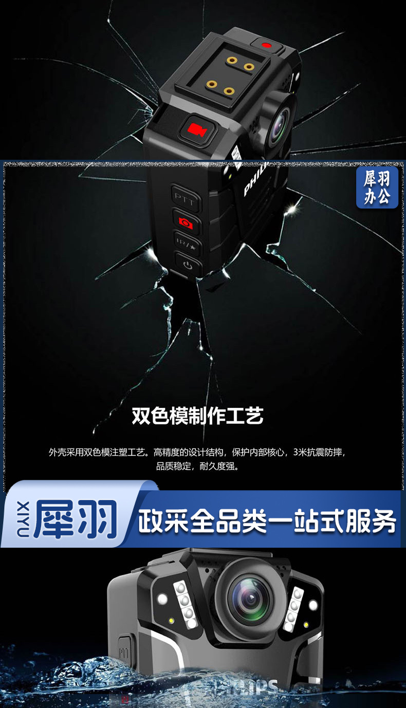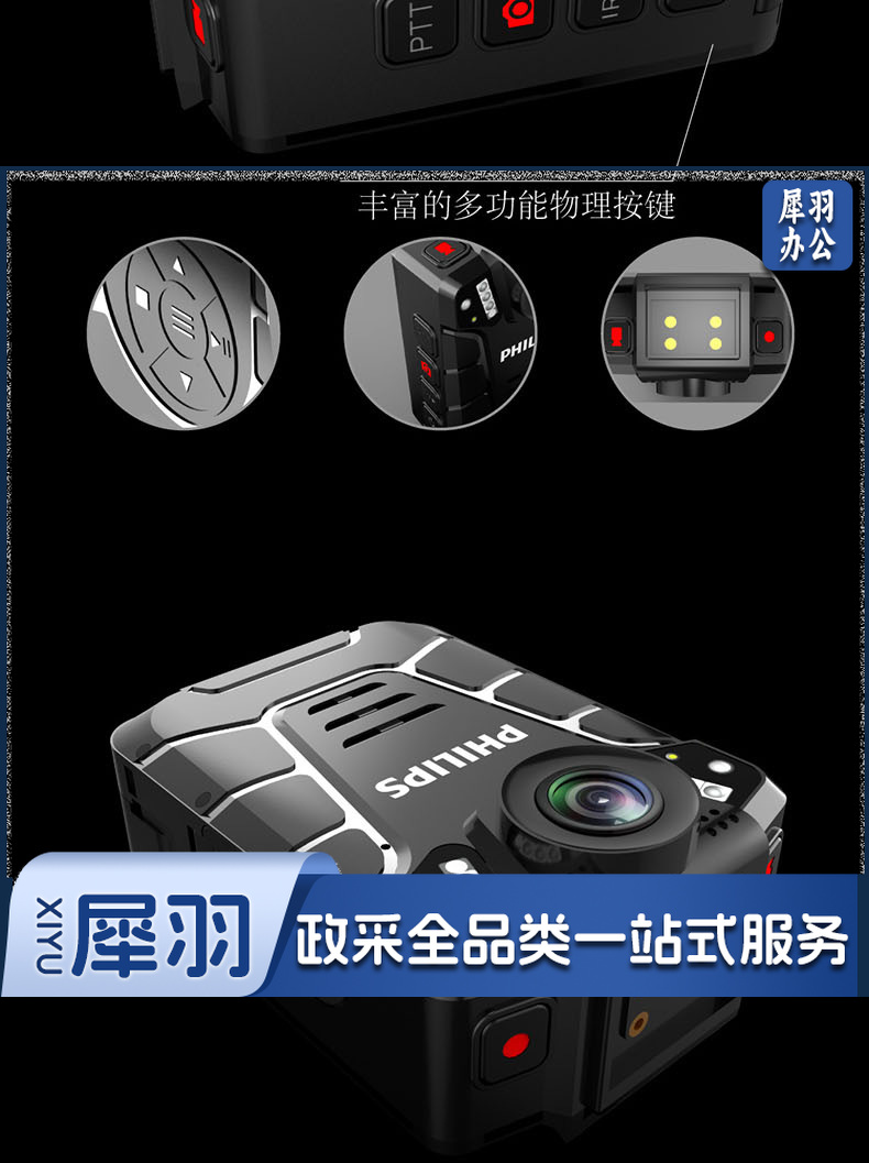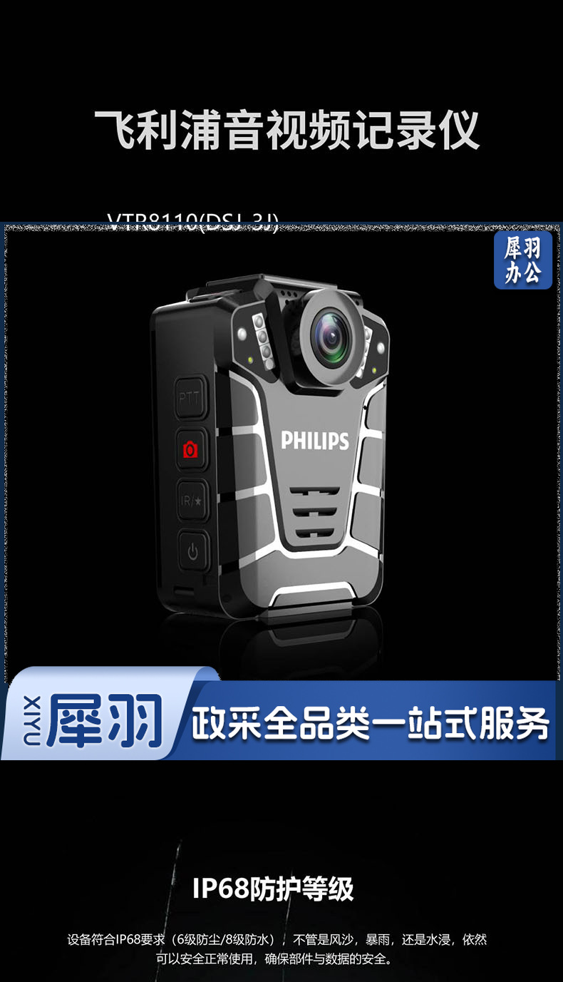 飞利浦 (PHILIPS )VTR-8110执法记录仪高清红外夜视现场记录仪摄像机随身60帧记录仪 防水IP68级 128G内存
