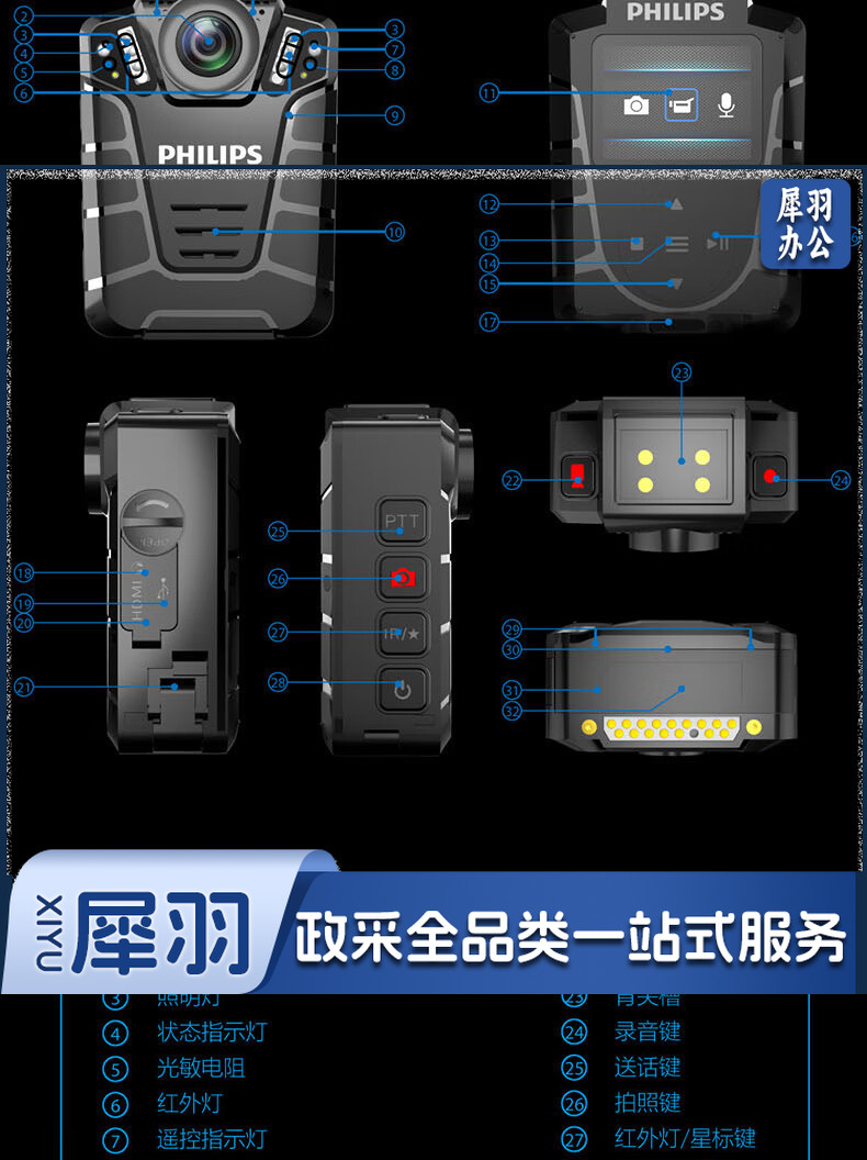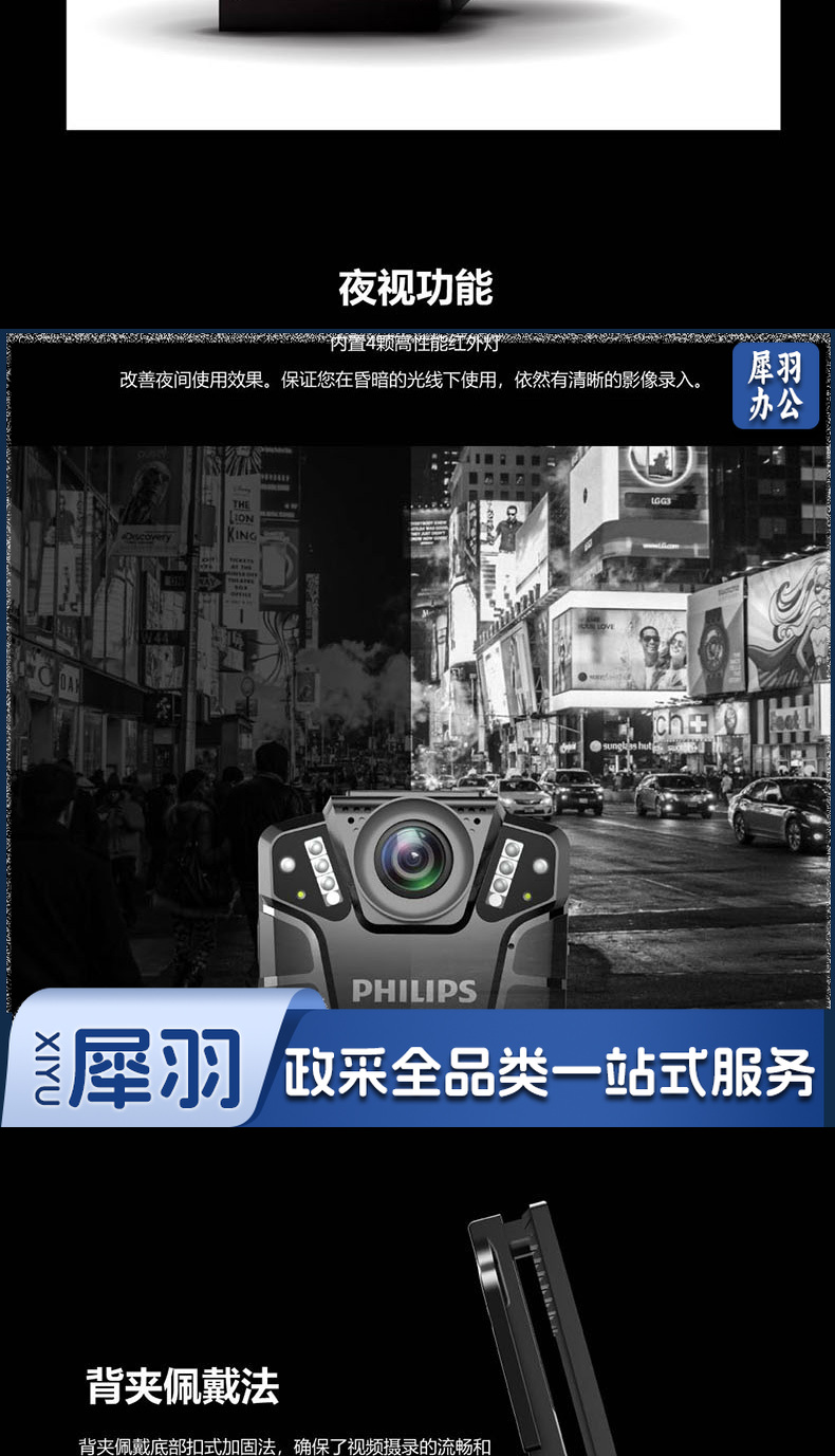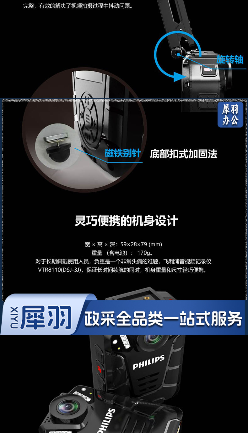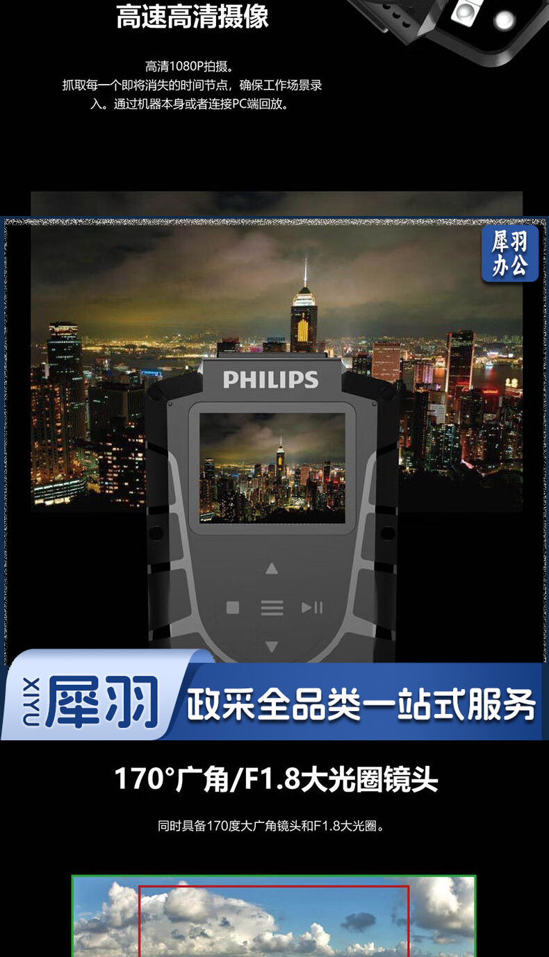 飞利浦 (PHILIPS )VTR-8110执法记录仪高清红外夜视现场记录仪摄像机随身60帧记录仪 防水IP68级 128G内存