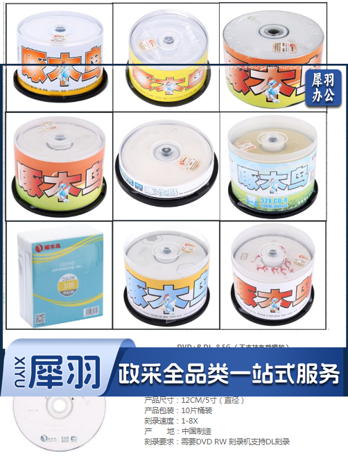 啄木鸟 DVD+R 光盘/刻录光盘/空白光盘/刻录碟片/大容量/ DL 8速 8.5G 单面双层 10片桶装 刻录盘