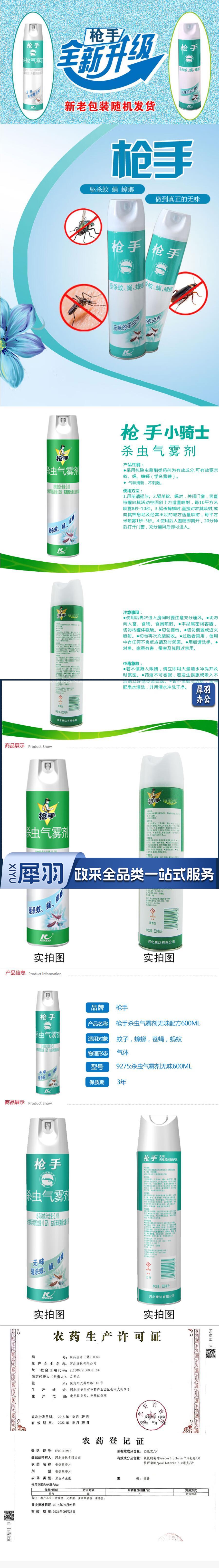 枪手杀虫气雾剂 无味600ml 驱杀蚊虫苍蝇飞飞虫喷雾剂