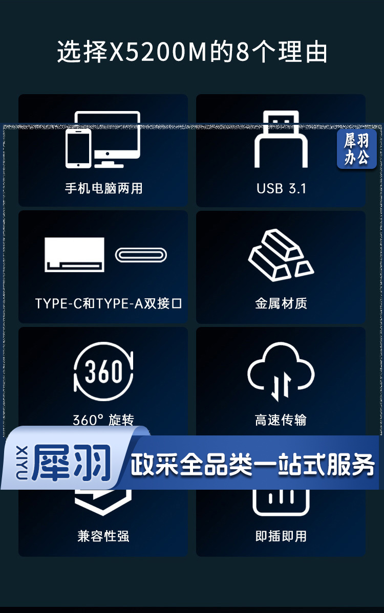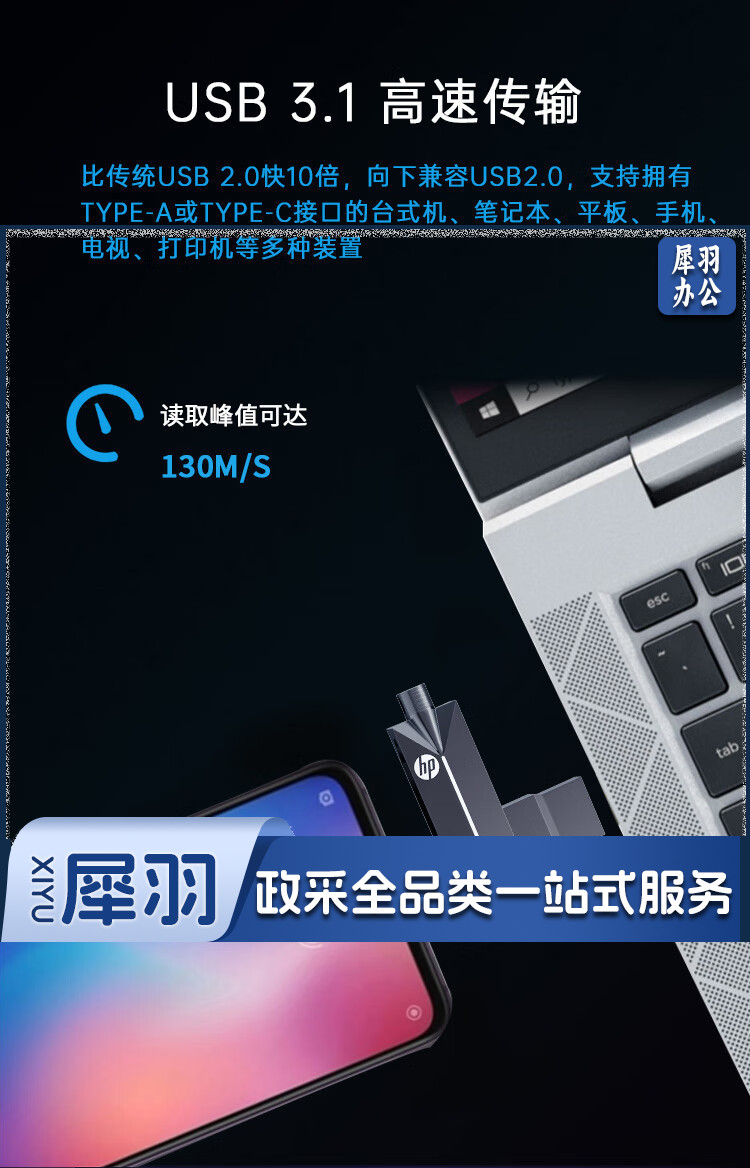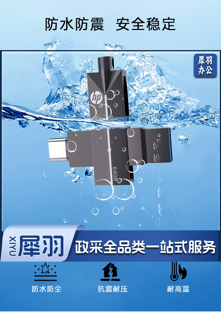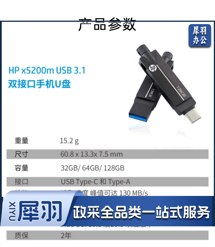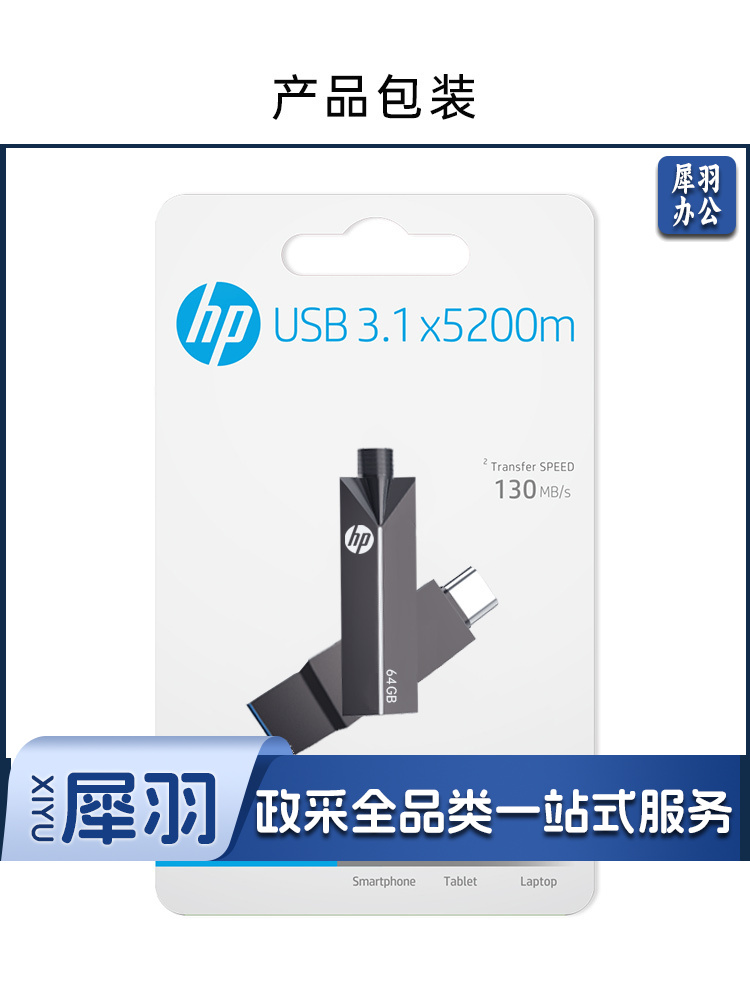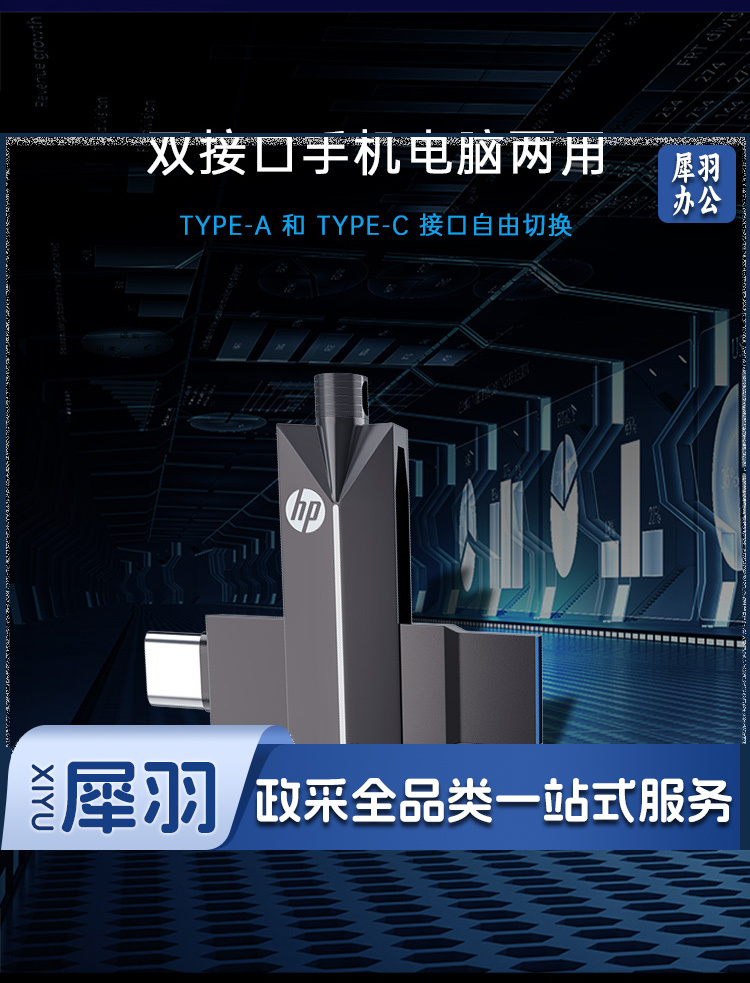 惠普(HP)128GB Type-C USB3.1 手机U盘 x5200m高速读写版 可旋转双接口手机电脑两用优盘