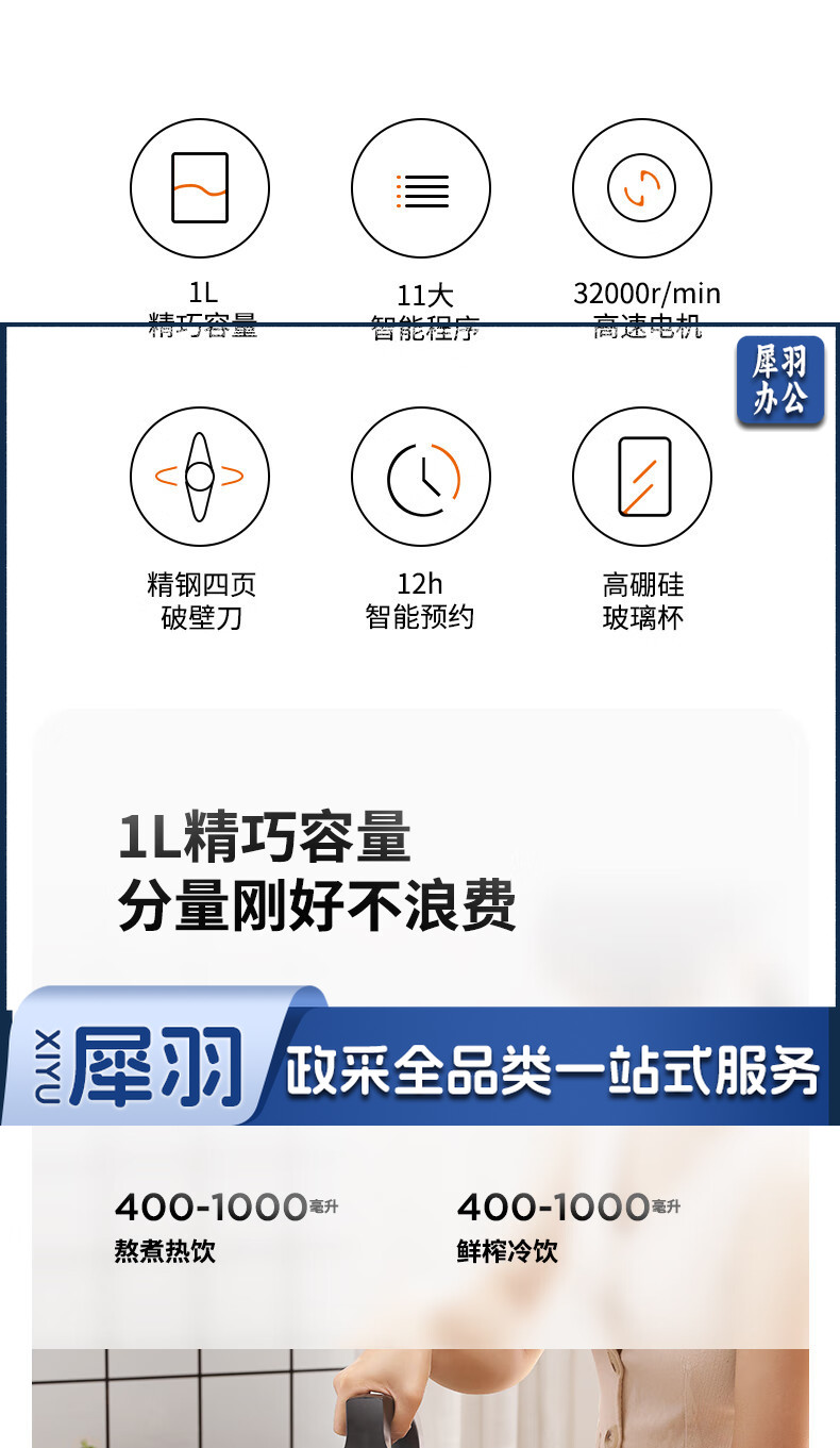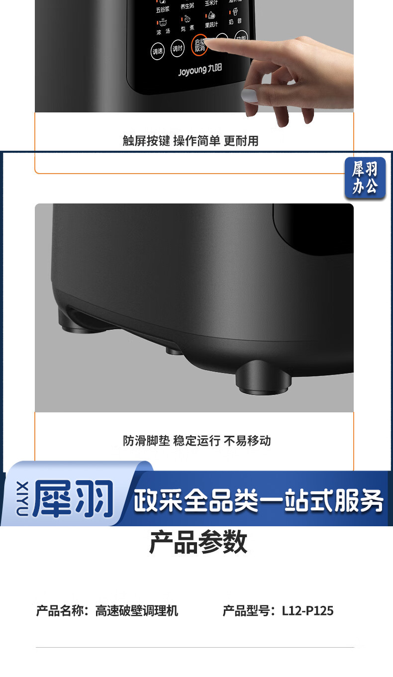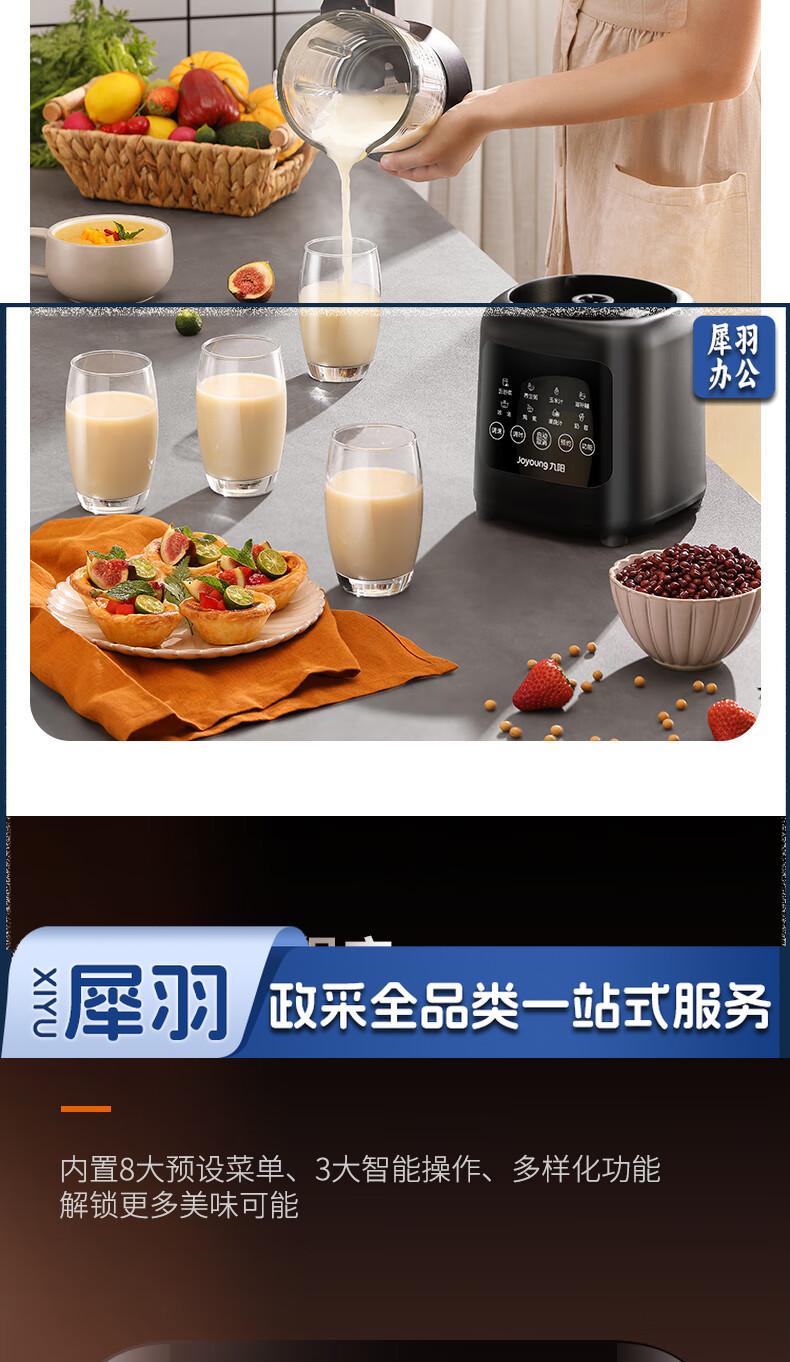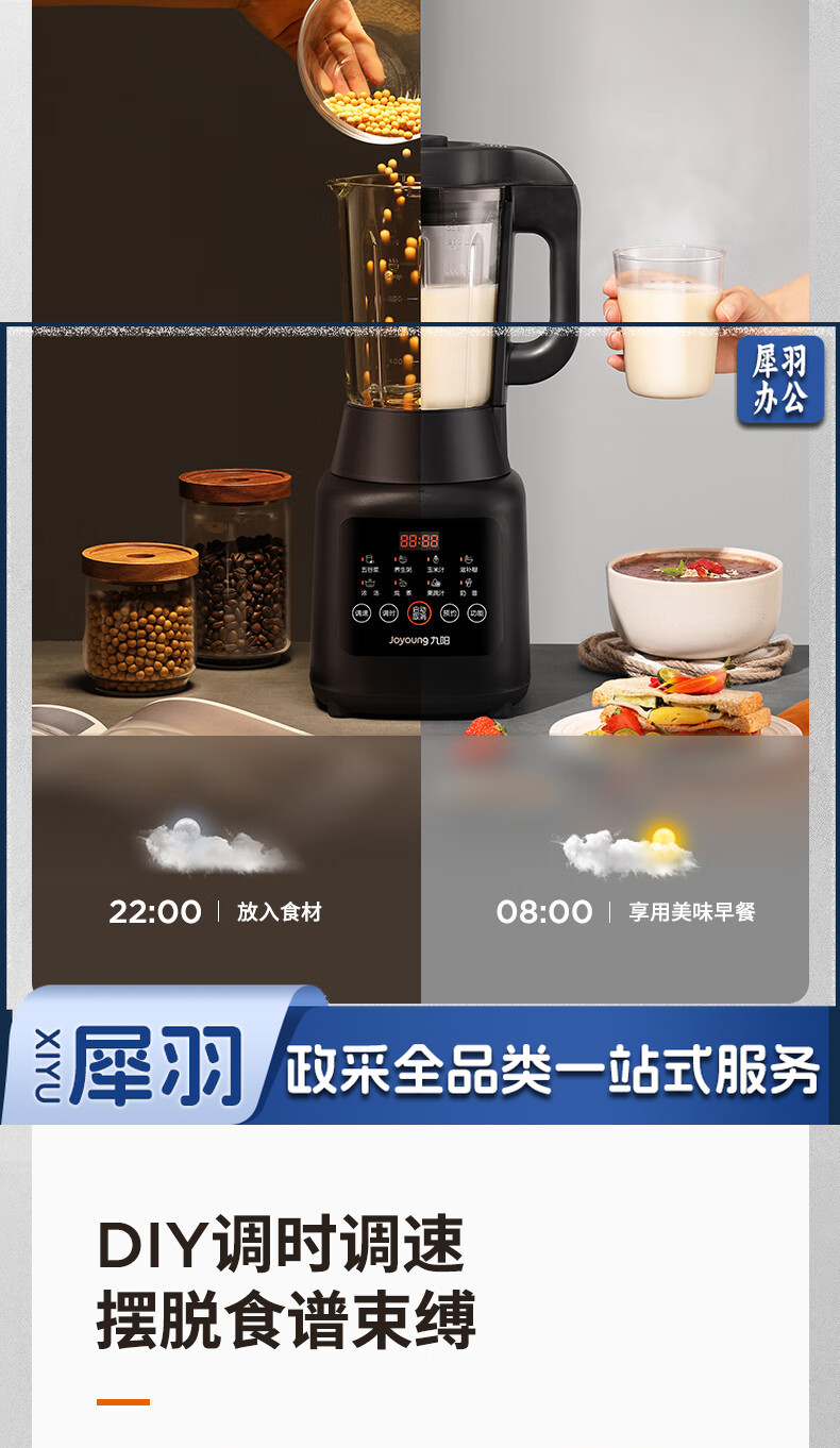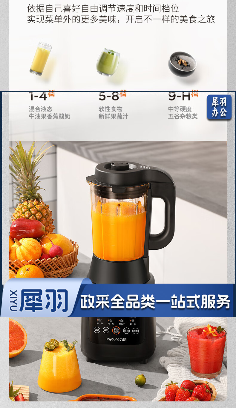 九阳 破壁机高速调理机家用多功能破壁机预约料理机榨汁机豆浆机 破壁机L12-P125深空黑
