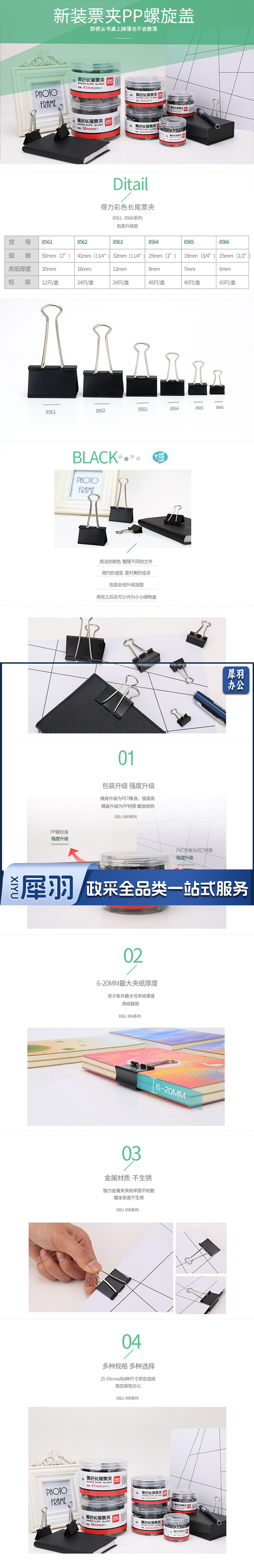 得力/deli 8562-2# 长尾票夹41mm(筒装) 24只/筒(单位:筒) 黑色