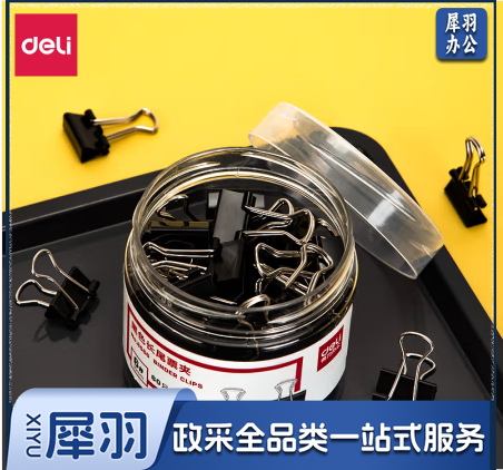 得力 60只 15mm黑色长尾夹票夹 6#燕尾夹 金属票据夹 铁夹子 桶装 8566