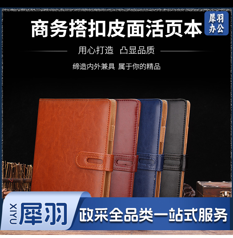 申士(SHEN SHI) B5/16K 9孔商务活页皮面本 办公记事笔记本子 黑色(可当天配送发货)