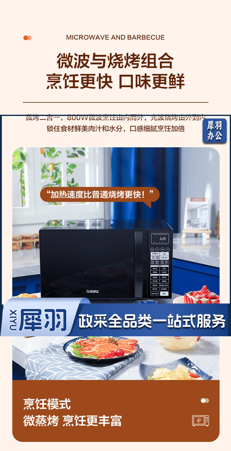 格兰仕23L平板加热光波炉营养解冻 微电脑操控微烤一体G80F23CN3L-Q6A(P0)
