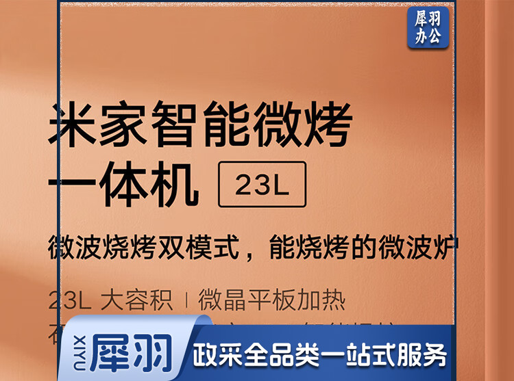 米家小米微波炉烤箱一体机家用多功能 小型小尺寸平板式 均匀加热烘烤烧烤 机械式旋钮 台式大容量23升