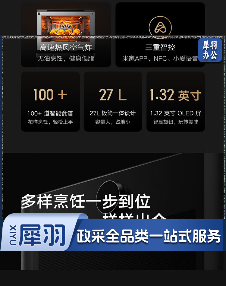 米家小米智能变频微蒸烤一体机 微波炉电烤箱电蒸箱空气炸四合一 专业烘烤 不锈钢内胆 台式大容量27升