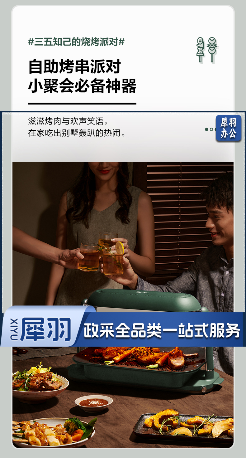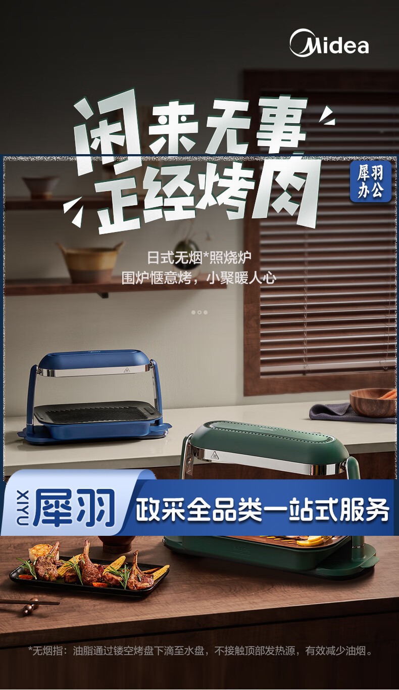 美的 Midea日式照烧炉烧烤炉家用电无烟烤串机烧烤锅烧烤盘室内韩式烤肉(蓝色)PT06B3